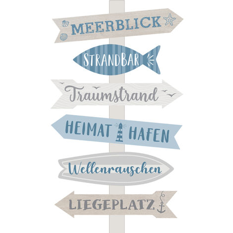 Holz Gartenschild MEERBLICK - 76cm Wegweiser Mit Erdspieß