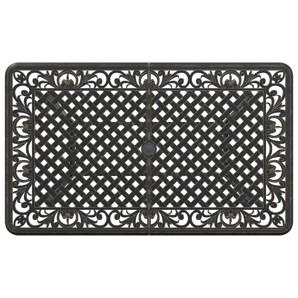 Terrassen-Besitzer, dieser vidaXL Gartentisch ist der perfekte Treffpunkt für gemütliche Stunden im Freien! Mit 150x90x72cm bietet er reichlich Platz für Getränke, Snacks und alles, was ihr für entspannte Stunden braucht. Aus langlebigem Aluminiumguss gefertigt, ist er nicht nur super leicht und pflegeleicht, sondern auch korrosionsbeständig und verblasst nicht in der Sonne. Das praktische Schirmloch in der Mitte ermöglicht es euch, euren Sonnenschirm bei Sonne oder Regen anzubringen - perfekter Schutz für die ganze Familie! Die vier stabilen Beine sorgen für absolute Standfestigkeit, auch auf unebenem Untergrund. Das schöne Muster auf der Tischplatte verleiht dem ganzen einen extra stylischen Touch. Einfach aufbauen und sofort nutzbar - ob für gemütliche Familienabende, Grillpartys oder einfach zum Entspannen. Macht eure Terrasse zum Lieblingsplatz im Haus!