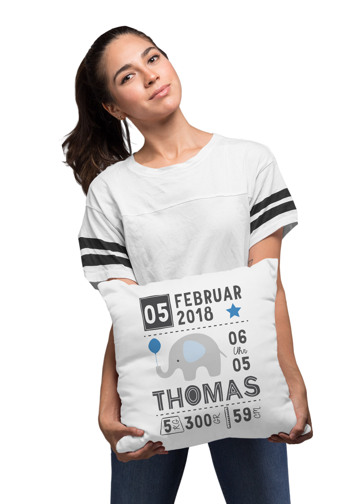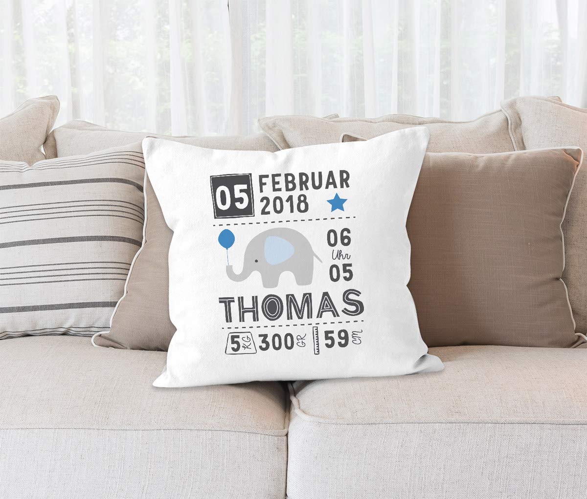 SpecialMe Geburtskissen Personalisiert - Elefant Design Mit Namen & Geburtsdaten 40x40cm