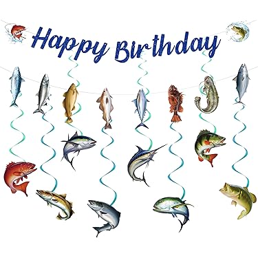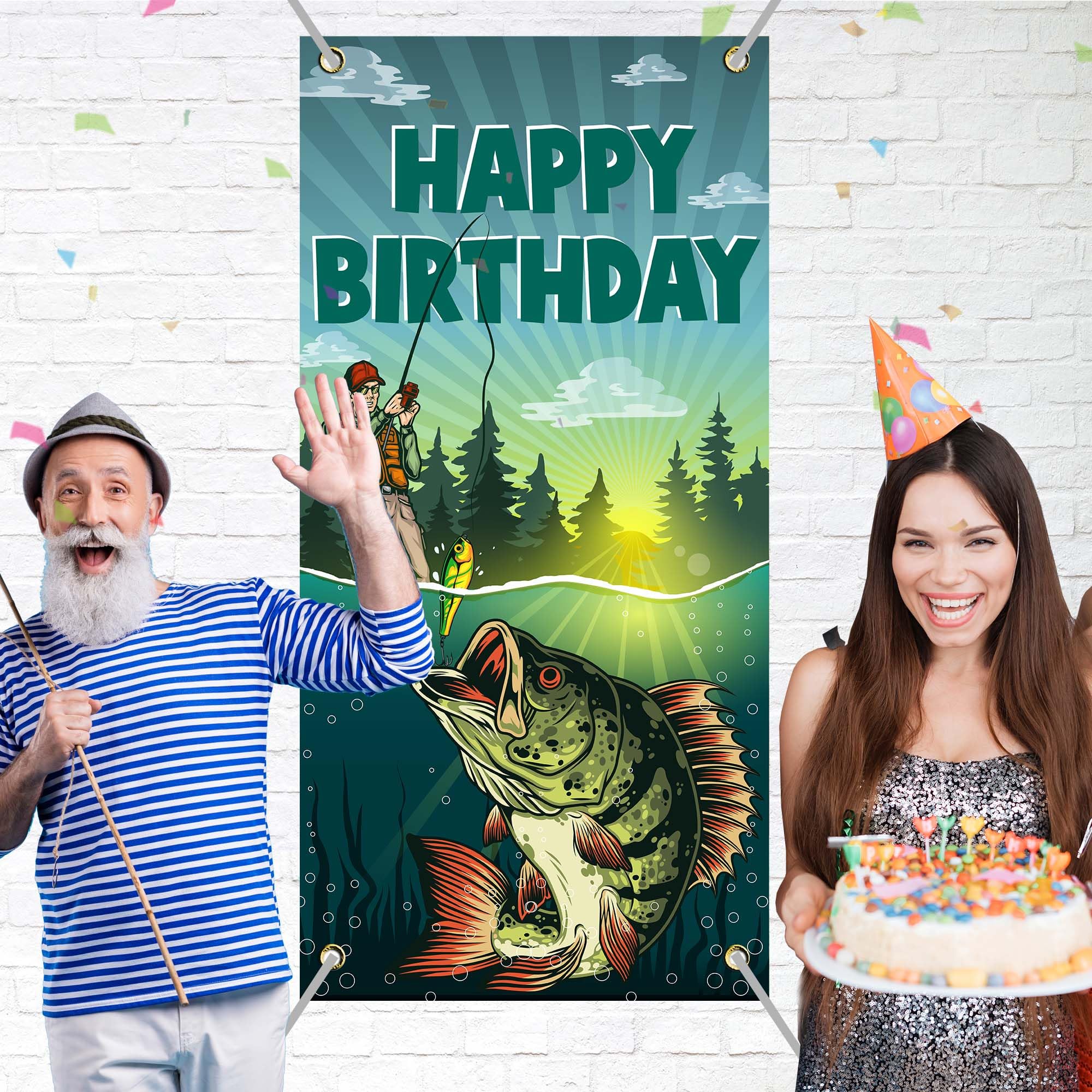 Angeln Geburtstag Banner - 10-teilige Fishing Deko Mit Fischen & Wirbeln