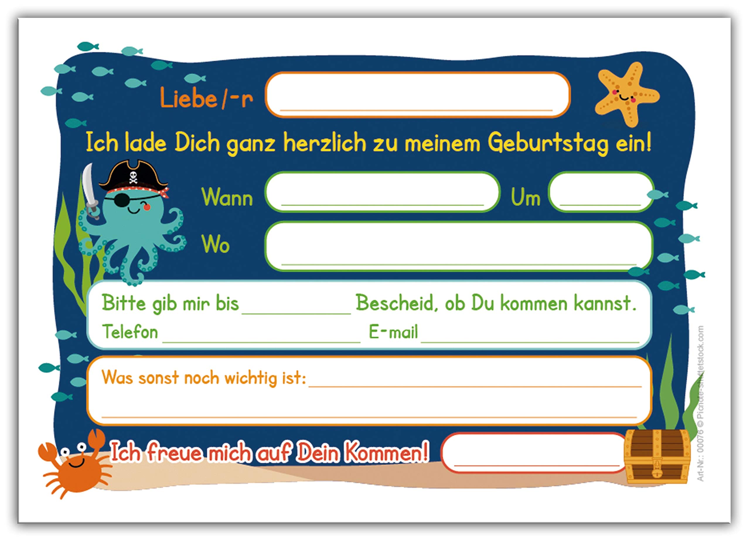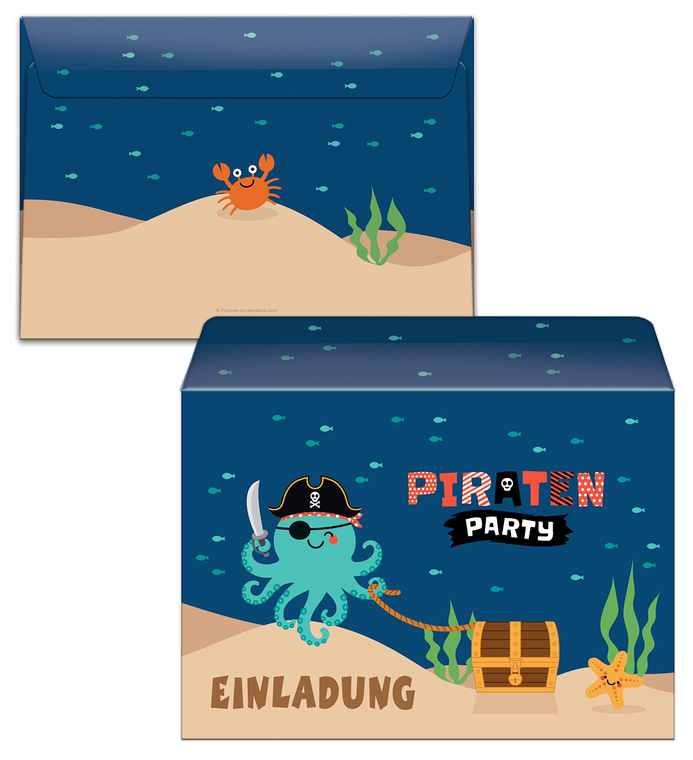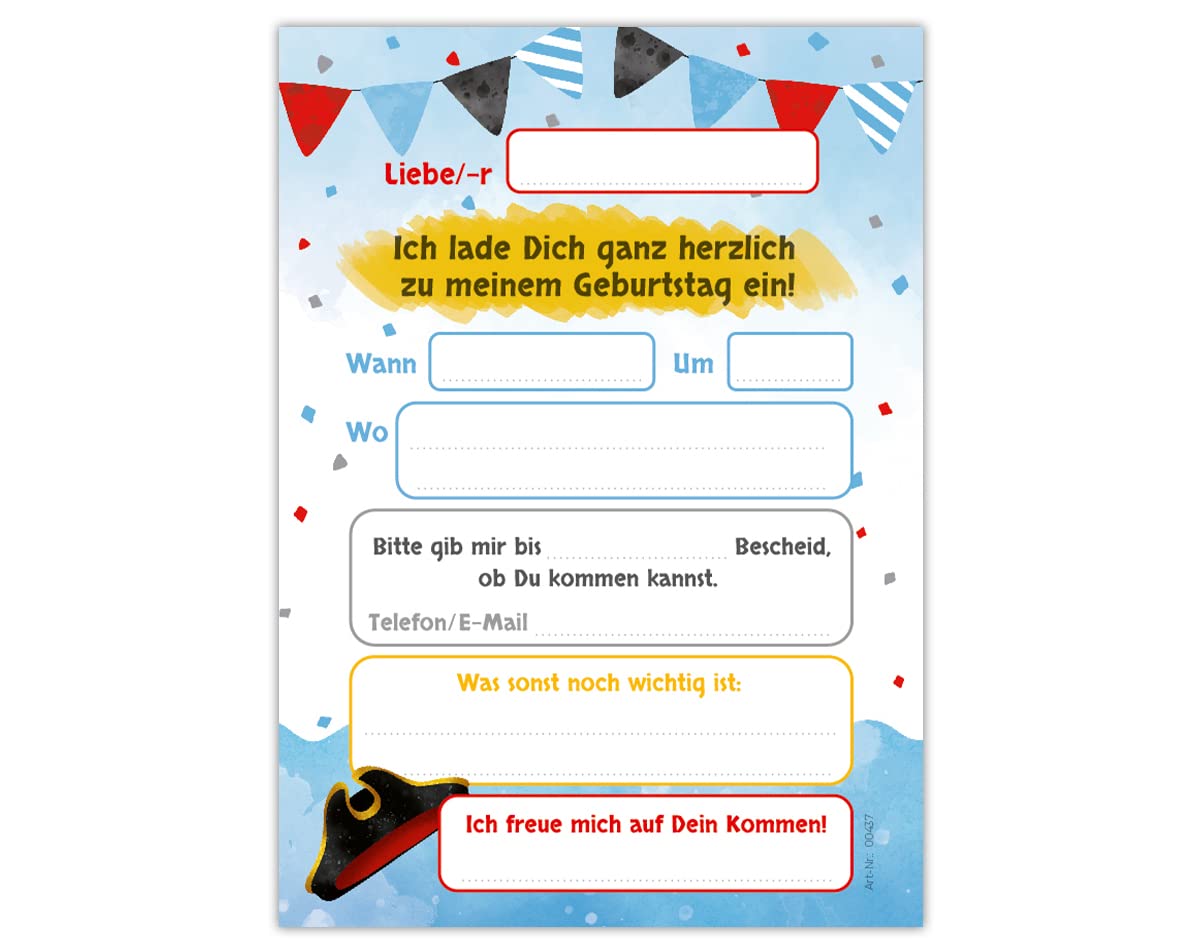 Piraten Einladungskarten 6. Geburtstag - Komplettset Für 12 Gäste