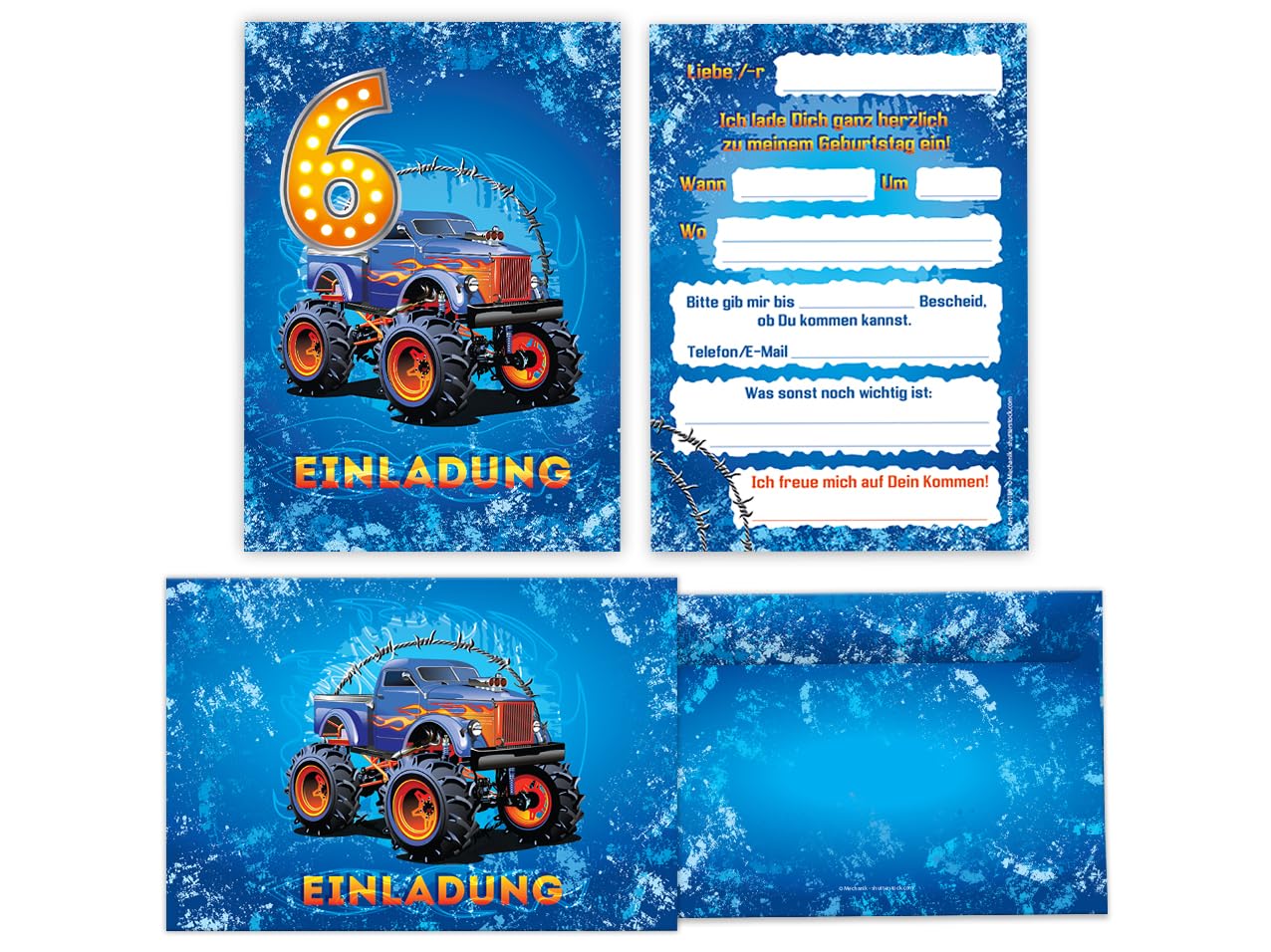 Ahoy, Matrose! Mach den 6. Geburtstag deines Kindes zu einem unvergesslichen Piraten-Abenteuer mit diesem komplettem Einladungs-Set für 12 Gäste. Enthalten sind: 12 A6-Einladungskarten mit UV-Lack, 12 passende Umschläge, 12 Party-Tüten (14x22 cm), 12 Aufkleber, 12 Lesezeichen, 12 Notizblöcke (DIN A7) und 12 'Schiffe versenken'-Spiele (DIN A6). Alles made in Germany in bester Qualität! Die Karten bieten viel Platz für alle wichtigen Infos auf der Rückseite. Einfach ausfüllen, verschicken und die Vorfreude auf die große Piraten-Party steigern. Dieses Set spart dir jede Menge Vorbereitungszeit und sorgt für strahlende Kinderaugen!