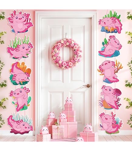 Axolotl Geburtstagsdeko Set - 12-teilig Mit Ballons & Banner In Rosa
