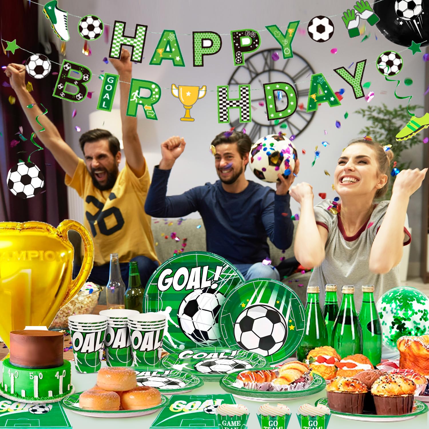 Perfekte Fußball-Party für deinen 7-jährigen! Dieses Komplett-Set hat alles für 16 Gäste: Teller, Becher, Servietten, Strohhalme, Luftballons, Tortendeko und Banner - alles im coolen Fußball-Design! Grüne Farben wie ein echtes Fußballfeld mit 'GOAL!' Aufschriften. Super einfach zu dekorieren - kein komplizierter Aufbau! Aus hochwertigem, wasserdichtem Papier - robust und sicher für Kinder. Nach der Party einfach entsorgen - kein lästiges Abspülen! Perfekt für Geburtstage, WM-Partys oder Sportevents. Mach die Party deines Kindes zum unvergesslichen Erlebnis!