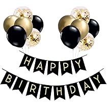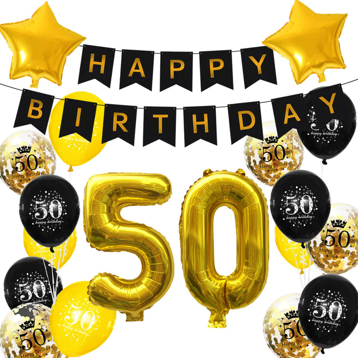 Runyuzi Geburtstagsdeko Set Gold - Happy Birthday Banner Mit Ballons & Girlanden