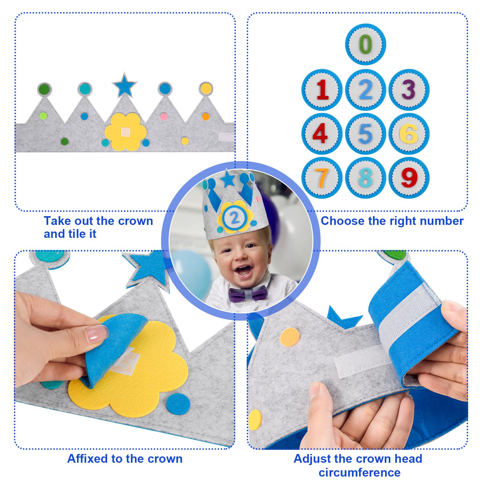 Die perfekte Krone für den Geburtstagskönig oder die Geburtstagsprinzessin! Aus weichem Samt, super angenehm zu tragen und hautfreundlich. Das besondere: Mitwechselbare Zahlen von 1-9 - so kann die Krone jedes Jahr wieder verwendet werden. Einfach die aktuelle Alterszahl anbringen und schon ist sie personalisiert. Toll für Kindergeburtstage, Karneval oder Mottopartys. In Blau, Größe ca. 23x16cm. Mach das Geburtstagskind zum Star des Tages! Auch super als Foto-Prop für unvergessliche Erinnerungen.