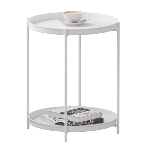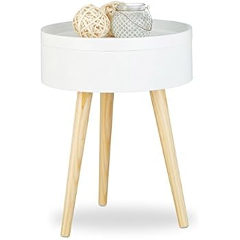 Gecheer Beistelltisch Rund Weiß - 100x49,5x31cm Holz Couchtisch