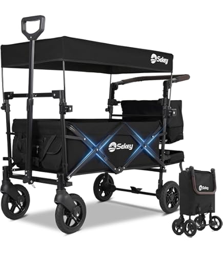 IMLEX Bollerwagen Faltbar Mit Dach - Gefederte Räder Für 2 Kinder Bis 80kg