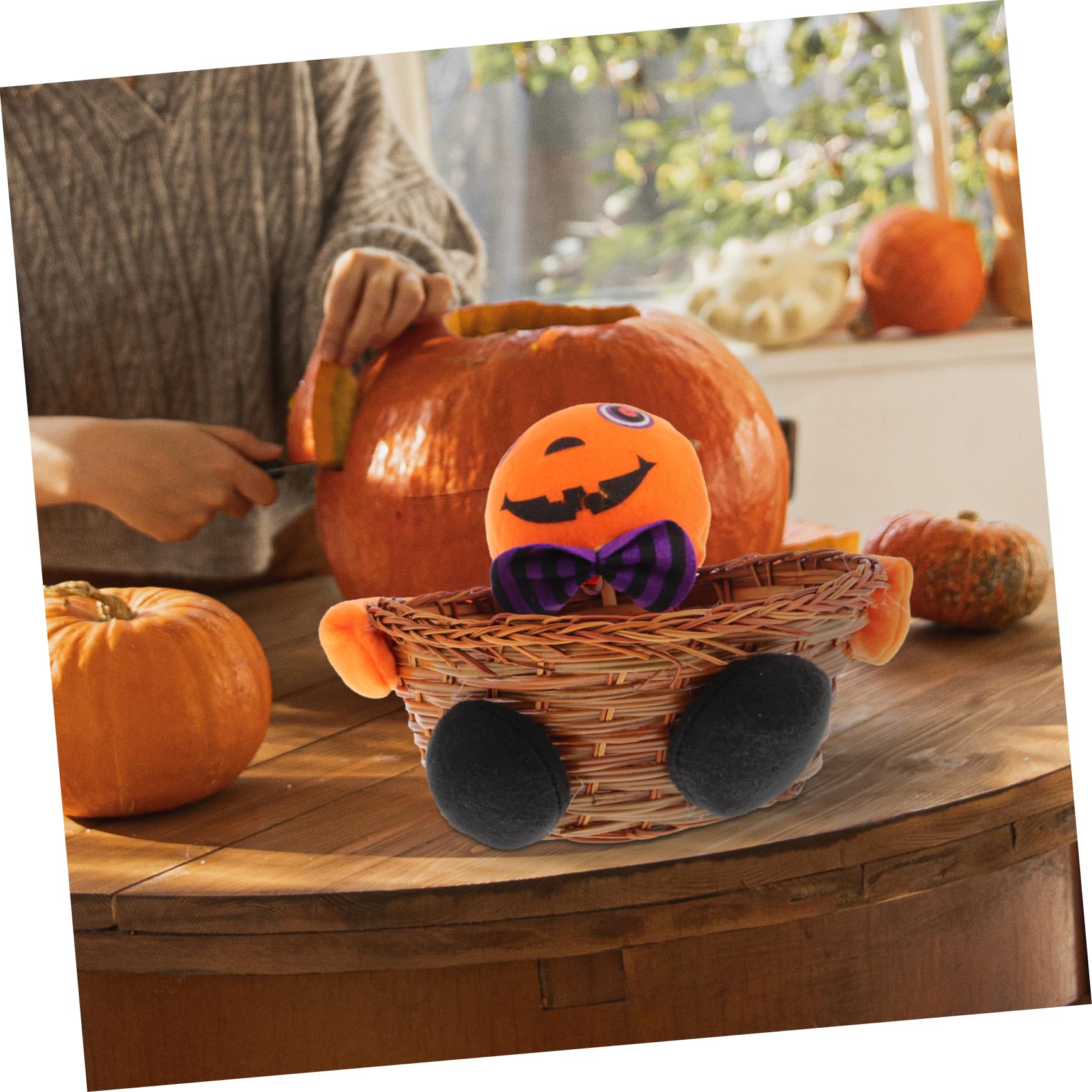 GTFYUDGH Halloween Kürbis Korb Geflochten - Süßer Aufbewahrungskorb Mit Deckel Für Herbstdeko