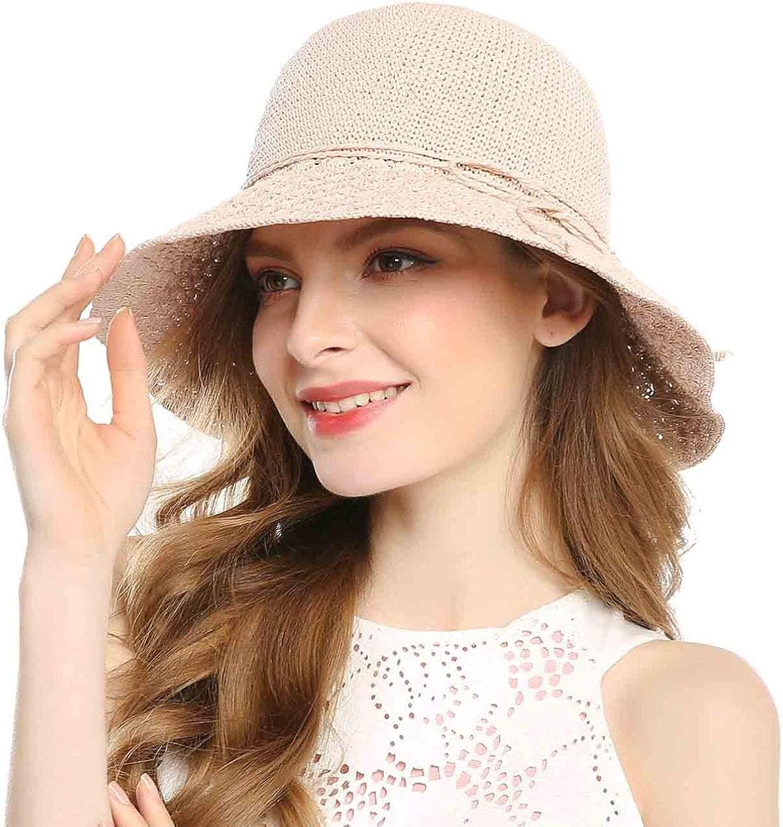 Ulalaza Damen Sonnenhut - Geflochtener Strohhut UPF 50+ Mit Breiter Krempe