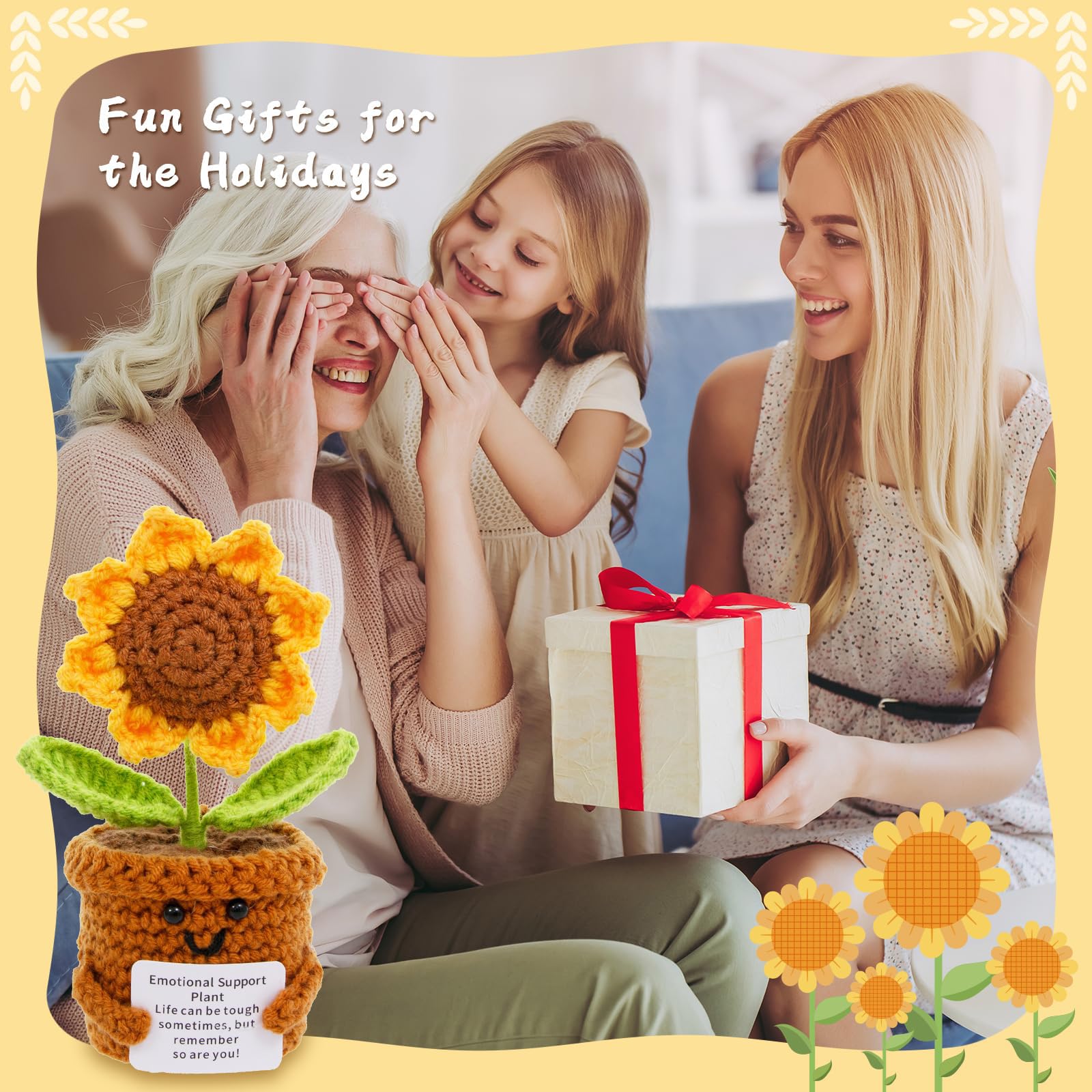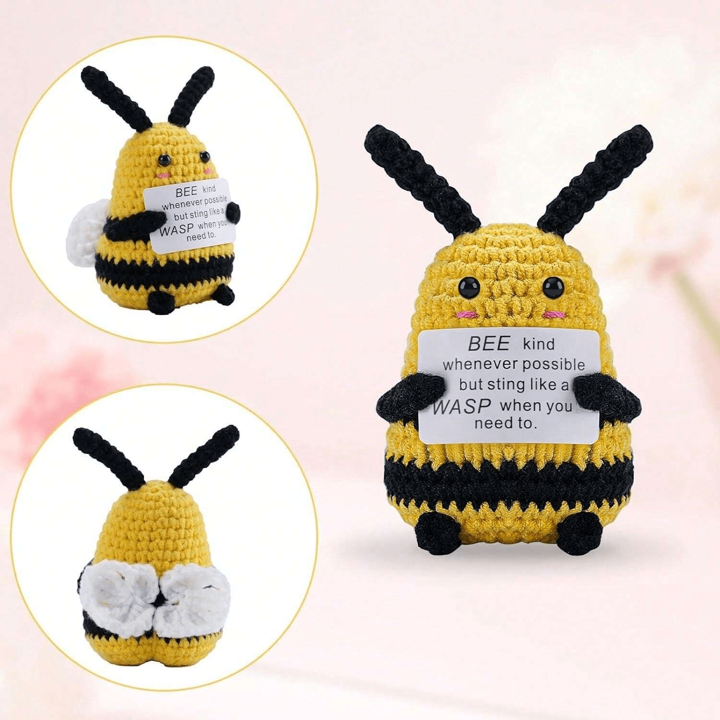 Diese süße gehäkelte Biene mit Sonnenblume ist einfach niedlich! Die handgemachte Puppe aus weicher Wolle bringt sofort gute Laune. Mit dabei ist eine ermutigende Karte mit positiven Botschaften - perfekt um jemandem eine Freude zu machen oder sich selbst zu verwöhnen. Die Biene ist etwa 8x6,5x5,5cm groß, die Antennen 4cm lang und die Sonnenblume hat 4,5cm Durchmesser - also genau die richtige Größe für die Handtasche oder als Deko für den Schreibtisch. Super weich und hochwertig verarbeitet - verblasst nicht und geht nicht so schnell kaputt. Ob als kleines Geschenk zum Geburtstag, als Dankeschön oder einfach als Aufmunterung für schlechte Tage - diese Biene sorgt für Lächeln! Ideal für Freunde, Familie oder Kollegen die eine Portion Positivität gebrauchen können.