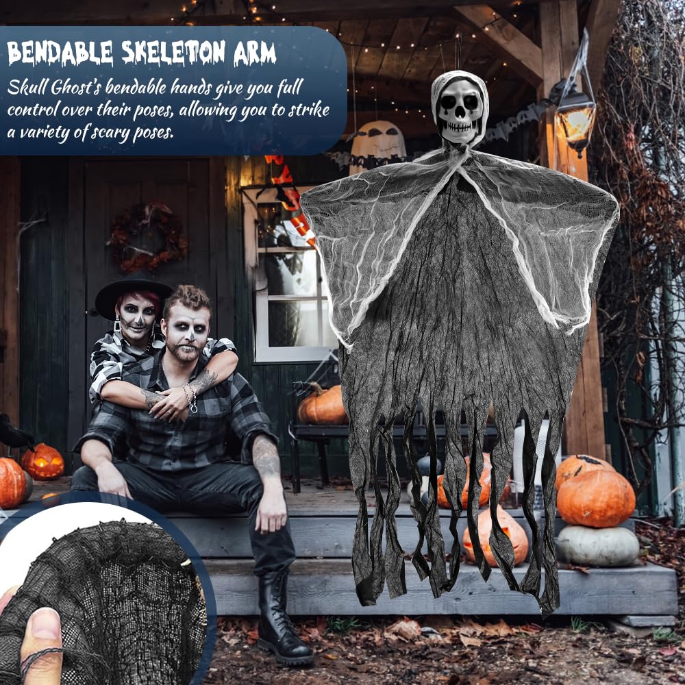 Halloween Deko Skelett Geist 107cm - Mit Spinnennetz & 20 Spinnen
