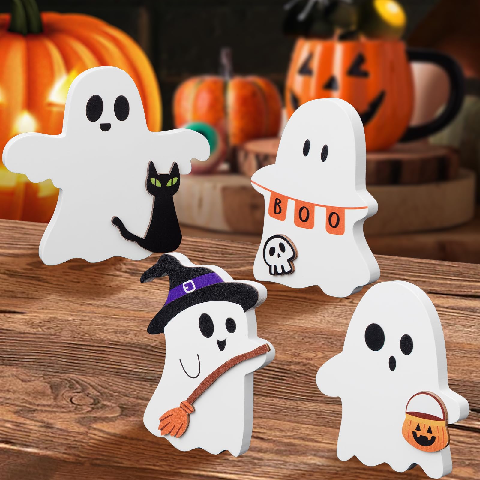 Oh wie süß! Diese drei niedlichen Geister von SOETDERT machen deine Halloween-Deko perfekt! Aus hochwertigem Holz gefertigt, mit fröhlichen Gesichtern und tollen Details wie Hexenbesen, Kürbissen und schwarzen Katzen. Jedes Tischschild ist zwischen 10-13cm groß und 1,5cm dick - perfekt für Regale, Tische oder Fensterbänke. Die weiße Farbe leuchtet schön und verblasst nicht. Super einfach zu platzieren, sie stehen von allein! Nicht nur zu Halloween ein Hingucker, sondern das ganze Jahr über. Ideal für Partys, Kinderzimmer oder als Geschenk für Halloween-Fans. Mach dein Zuhause gruselig-lustig ohne Angst zu verbreiten! Einfach mit einem trockenen Tuch abwischen - schon ist die Deko wieder sauber. Hol dir jetzt dieses charmante Set und lass die Geister spuken!
