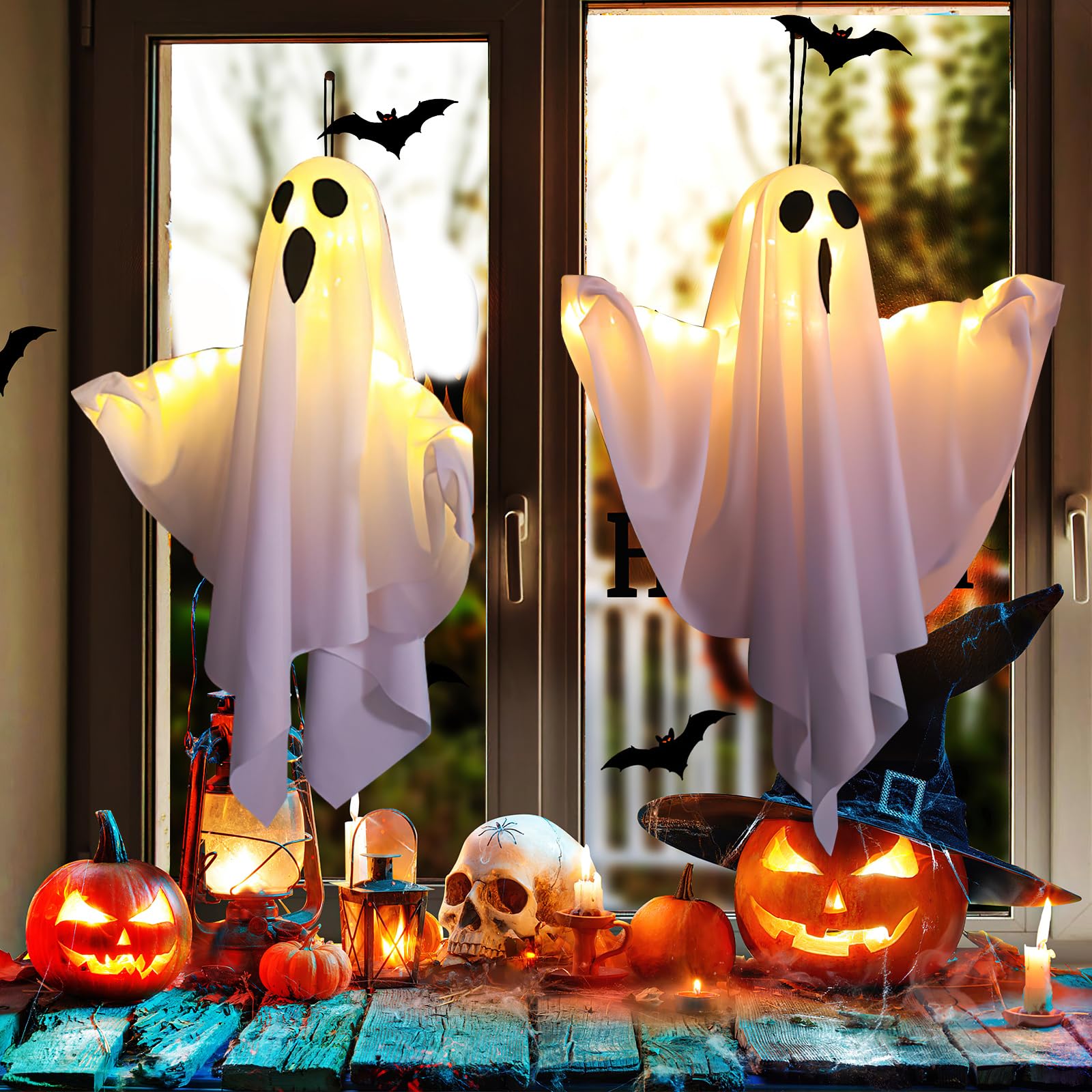 Hillylolly Halloween Geister Deko - Hängende LED Geister Mit Lichterkette