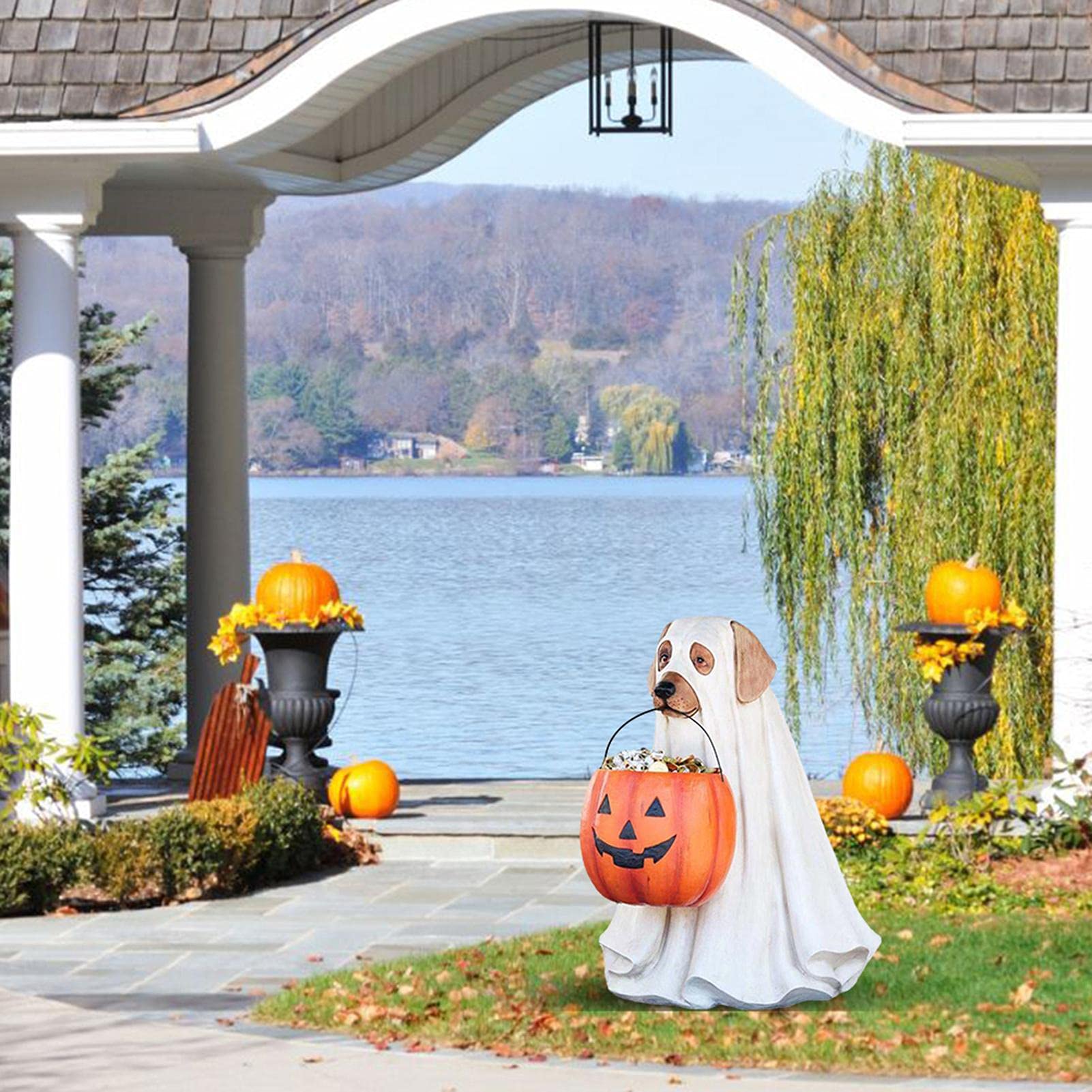 Geisterhund Halloween Deko Mit Süßigkeitenschale - Gruseliger Kürbis Ständer