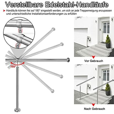 Sicherheit und Style für deine Treppe! Dieses schicke Edelstahl-Geländer in Schwarz gibt deinem Zuhause einen modernen Touch. Mit 100cm Länge und 106cm Höhe passt es perfekt für verschiedene Treppen-Typen. Besonders praktisch: Der Winkel ist verstellbar, sodass du es an verschiedene Steigungen anpassen kannst. Aus hochwertigem, robustem Edelstahl mit extra-dicker Trägerplatte (3,5mm) für maximale Stabilität. Die Montage ist super einfach - alle nötigen Teile sind dabei und die Expansionsschrauben sind nach der Installation unsichtbar. Ob innen oder außen, für moderne, industrielle oder ländliche Einrichtungsstile - dieses Geländer macht überall eine gute Figur! Einfach installieren und von mehr Sicherheit und gutem Design profitieren!