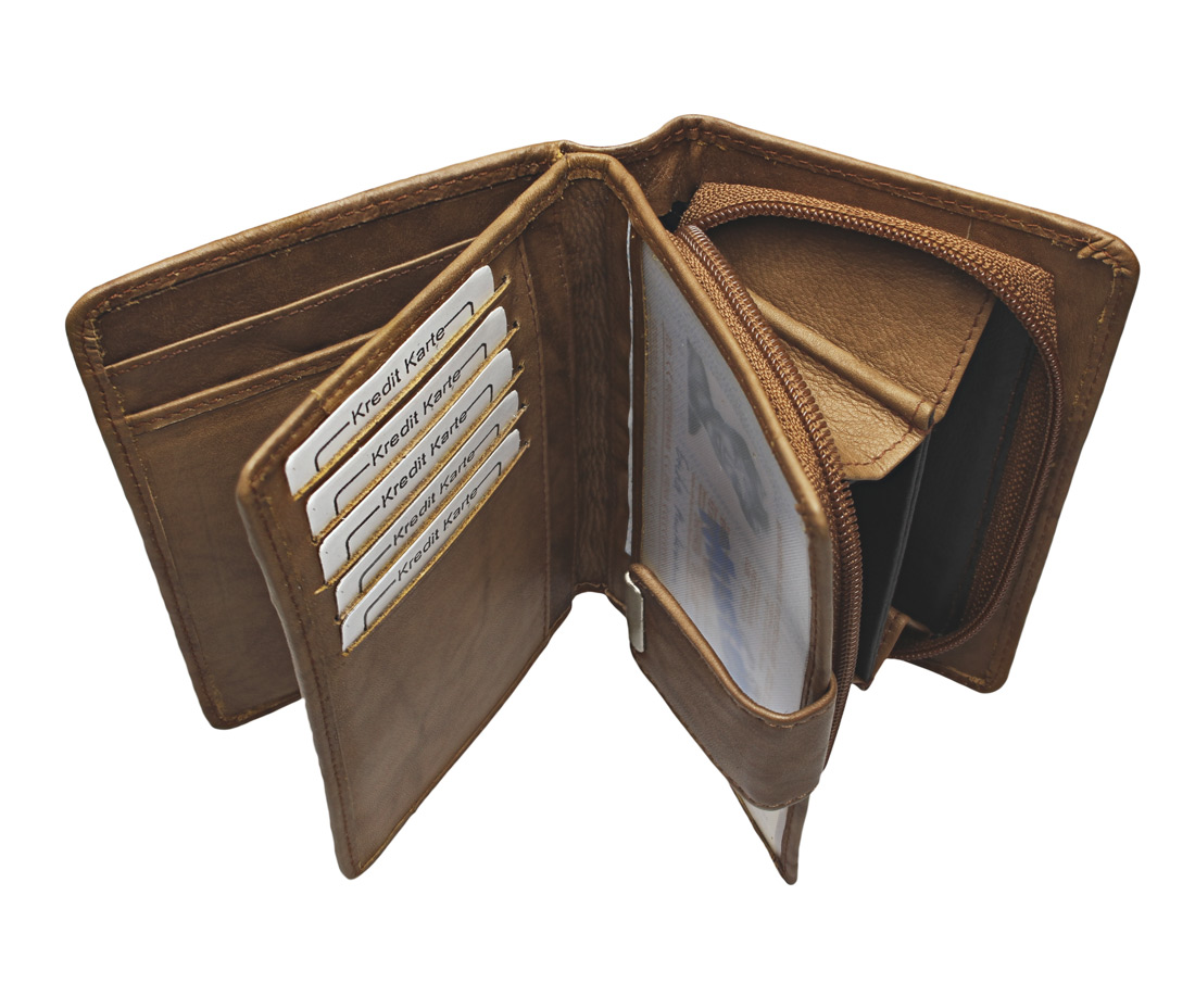 Caspar Leder Geldbeutel Damen - Made In Italy Mit Reißverschluss