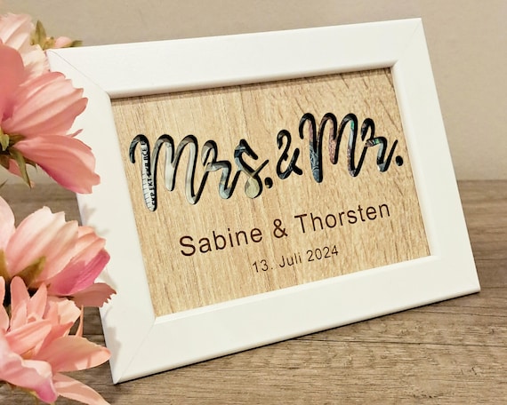 Holz Geldgeschenk Hochzeit - Personalisiert Mr & Mrs Mit Brautpaar-Motiv