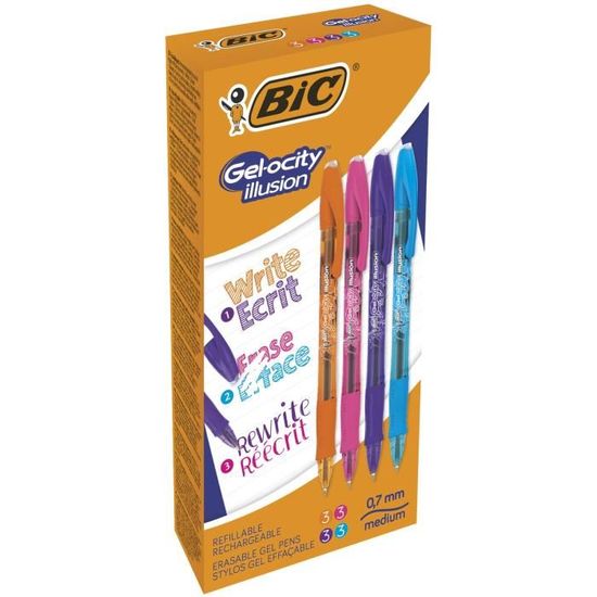 BIC Gel-ocity Illusion Gelroller 0,7mm - Löschbarer Stift 12er Pack Blau