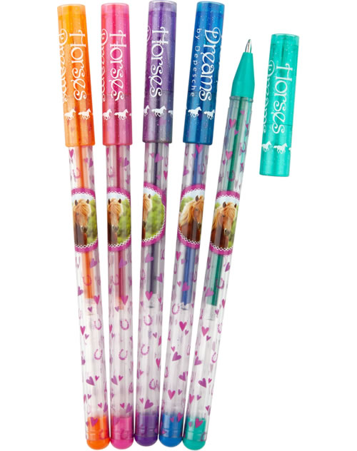 Depesche Dino World Glitzer Gelstifte Set - 5 Stifte In Metallfarben Mit Etui