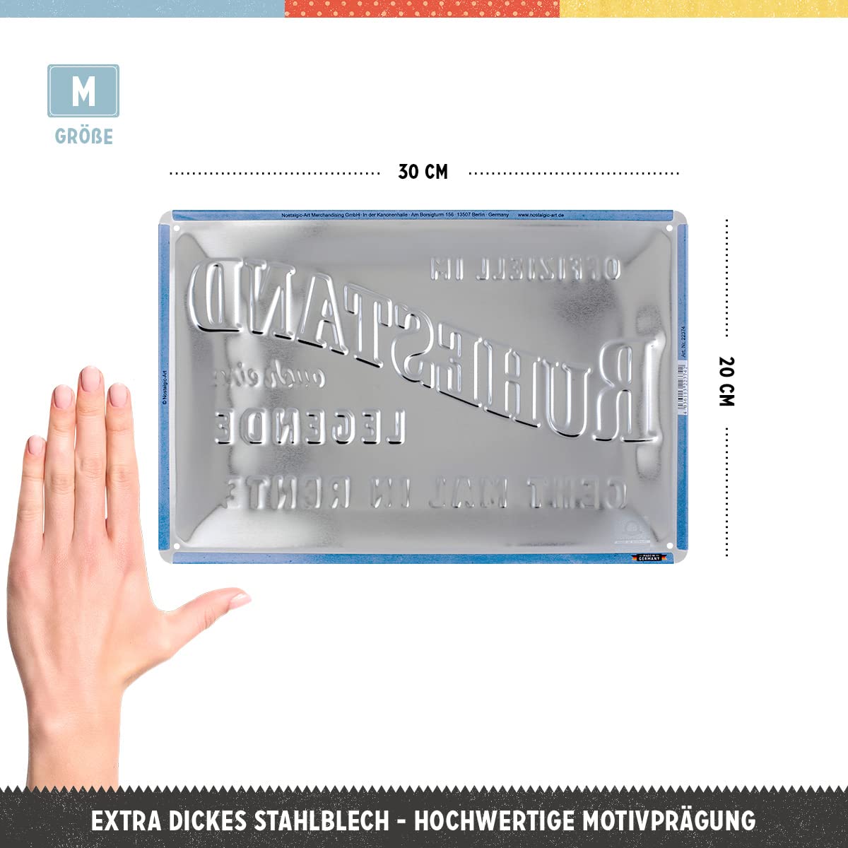 Echte Retro-Atmosphäre für deine vier Wände! Dieses Nostalgic-Art Blechschild im Format 15x20cm bringt vintage Flair in dein Zuhause. Mit dem witzigen \Gentlemen's Club\-Design ist es der perfekte Hingucker für Bar, Wohnzimmer oder Küche. Hergestellt in Deutschland aus robustem Stahlblech mit 3D-Motivprägung und brillantem Druck. Die bereits vorgebohrten Löcher machen das Aufhängen supereinfach. Viel hochwertiger als normale Poster und absolut langlebig. Ein ideales Geschenk für Männer mit Humor oder alle, die den Retro-Charme lieben. \Designed in Berlin\ - Qualität, die man sieht und spürt! So holst du dir ganz einfach einen coolen Vintage-Look nach Hause.