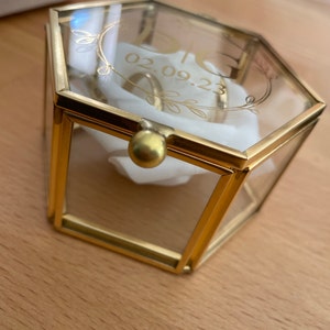 Wunderschöne Aufbewahrung für deine Schätze! Diese sechseckige Schmuckdose aus Glas und goldfarbenem Metall ist ein echter Hingucker. Durch die klaren Glaswände siehst du deine Ringe, Ohrringe und Armbänder von allen Seiten - alles schön organisiert und griffbereit. Der Klappdeckel öffnet sich smooth, und die Metallkette verhindert, dass er zu weit zurückschlägt. Maße: 7x6,5x4,8 cm - perfekt für die Kommode oder als Deko-Stück. Die Verarbeitung ist erstklassig: saubere Lötstellen, glatte Glaskanten, stabil und staubdicht. Ein traumhaftes Geschenk für Geburtstage, Hochzeiten oder Jubiläen - oder einfach für dich selbst, weil du es dir wert bist!