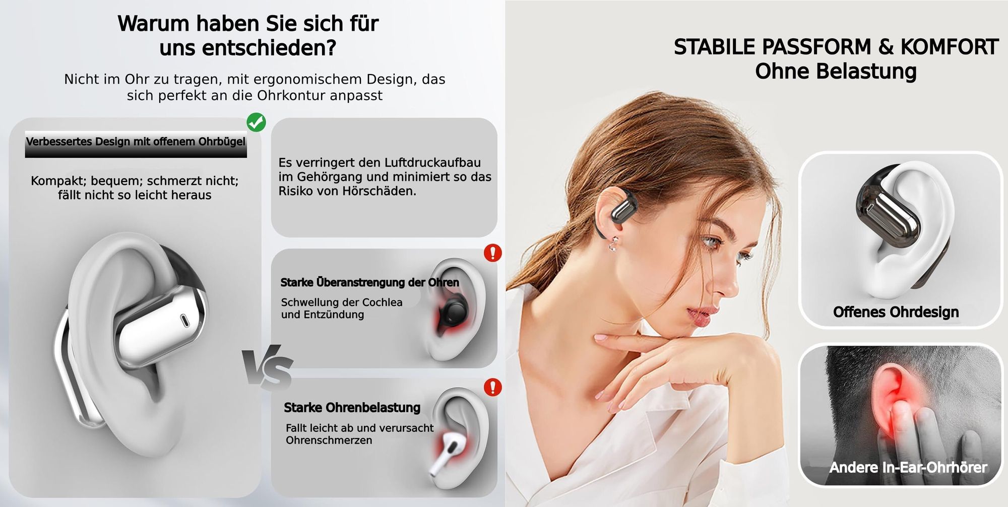 Musik hören und die Umgebung wahrnehmen! Diese Gerbala Clip On Kopfhörer sitzen sicher am Ohr ohne in den Gehörgang zu gehen. Bluetooth 5.4 für stabile Verbindung. Innovativer Touchscreen zum Steuern von Musik und Anrufen. Nur 4,3g pro Ohrhörer - kaum spürbar. Bis zu 6 Stunden Laufzeit, mit Case 60 Stunden. ENC-Geräuschunterdrückung für klare Anrufe. Musik- und Gaming-Modus. Perfekt für Sport, Büro oder unterwegs. In lila - stylisch! Hol dir diese cleveren Kopfhörer!