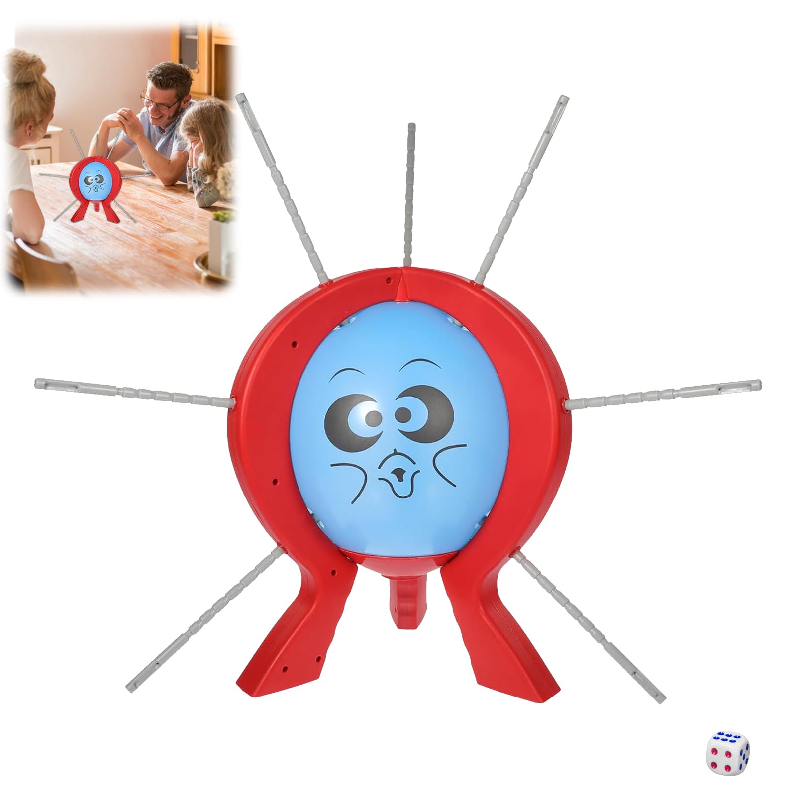Spannung und Nervenkitzel pur mit diesem lustigen Ballon-Platzen-Spiel! Wer bringt den Ballon zum Explodieren? Bei diesem beliebten Geschicklichkeitsspiel für 2 oder mehr Spieler ab 8 Jahren ist äußerste Vorsicht und Fingerspitzengefühl gefordert. Im Set enthalten: 3 Ständer, runder Boden, dreieckiger Schnapper, Würfel, 9 Ballons und 9 Plastikstäbe. Einfach aufbauen - Ballon aufblasen und anbringen, dann abwechselnd würfeln und die entsprechende Anzahl Stäbchen in den Ballon stecken. Wer den Ballon zum Platzen bringt, hat verloren! Das Spiel fördert Feinmotorik, Konzentration und macht einfach riesigen Spaß. Aus hochwertigem Kunststoff gefertigt, stabil und langlebig. Perfekt für Familienfeiern, Kindergeburtstage oder gesellige Abende. Aber Vorsicht: Enthält verschluckbare Kleinteile - nicht für Kinder unter 3 Jahren geeignet. Bereit für nervenaufreibenden Spielspaß?