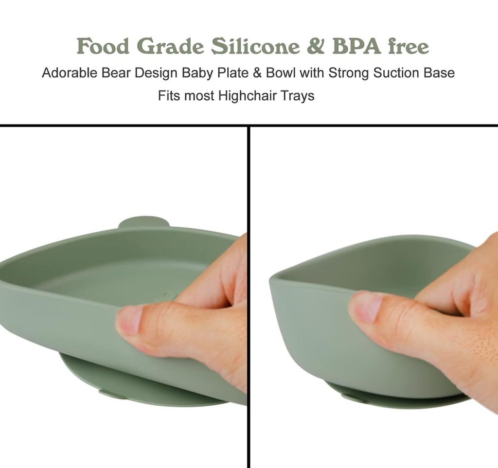 6-teiliges Baby Geschirr Set Aus Silikon - Rutschfester Teller Mit Saugnapf & Besteck