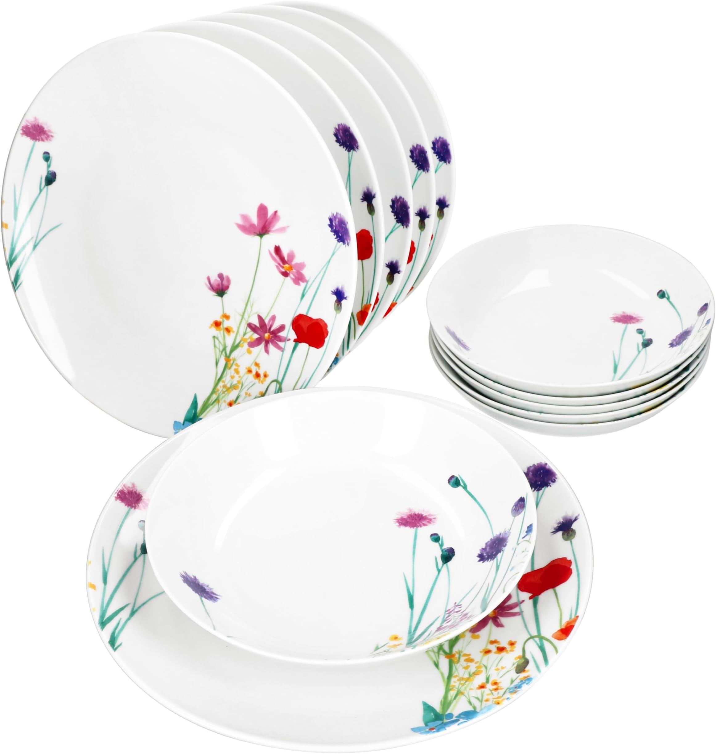 Weihnachtliche Stimmung auf dem Teller! Dieses entzückende 30-teilige Geschirrset von MamboCat bringt festliche Freude in dein Zuhause. Mit niedlichen Lebkuchenmännchen, Zuckerstangen, Mistelzweigen und eisblauen Schneeflocken. Komplett für 6 Personen: je 6x Speiseteller (27cm), Suppenteller (400ml), Kuchenteller, Tassen (160ml) und Untertassen. Aus robustem Porzellan - spülmaschinen- und mikrowellengeeignet. Perfekt für das Weihnachtsmenü, Adventskaffee oder die Nikolausfeier. Die Tassen liegen gut in der Hand, die Teller haben praktische breite Ränder. Mach deine Festtage zu etwas ganz Besonderem - dieses Geschirrset sorgt für strahlende Augen!