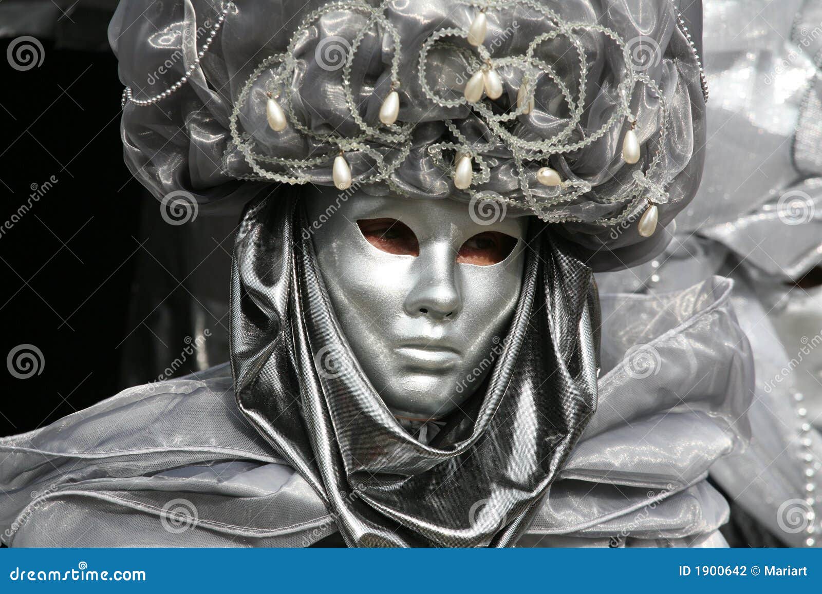 Verwandele dich im Handumdrehen! Diese silberne Gesichtsmaske aus Kunststoff bedeckt dein ganzes Gesicht und schafft mysteriöse Atmosphäre. Mit praktischem Gummizug - passt sich jeder Kopfform an.