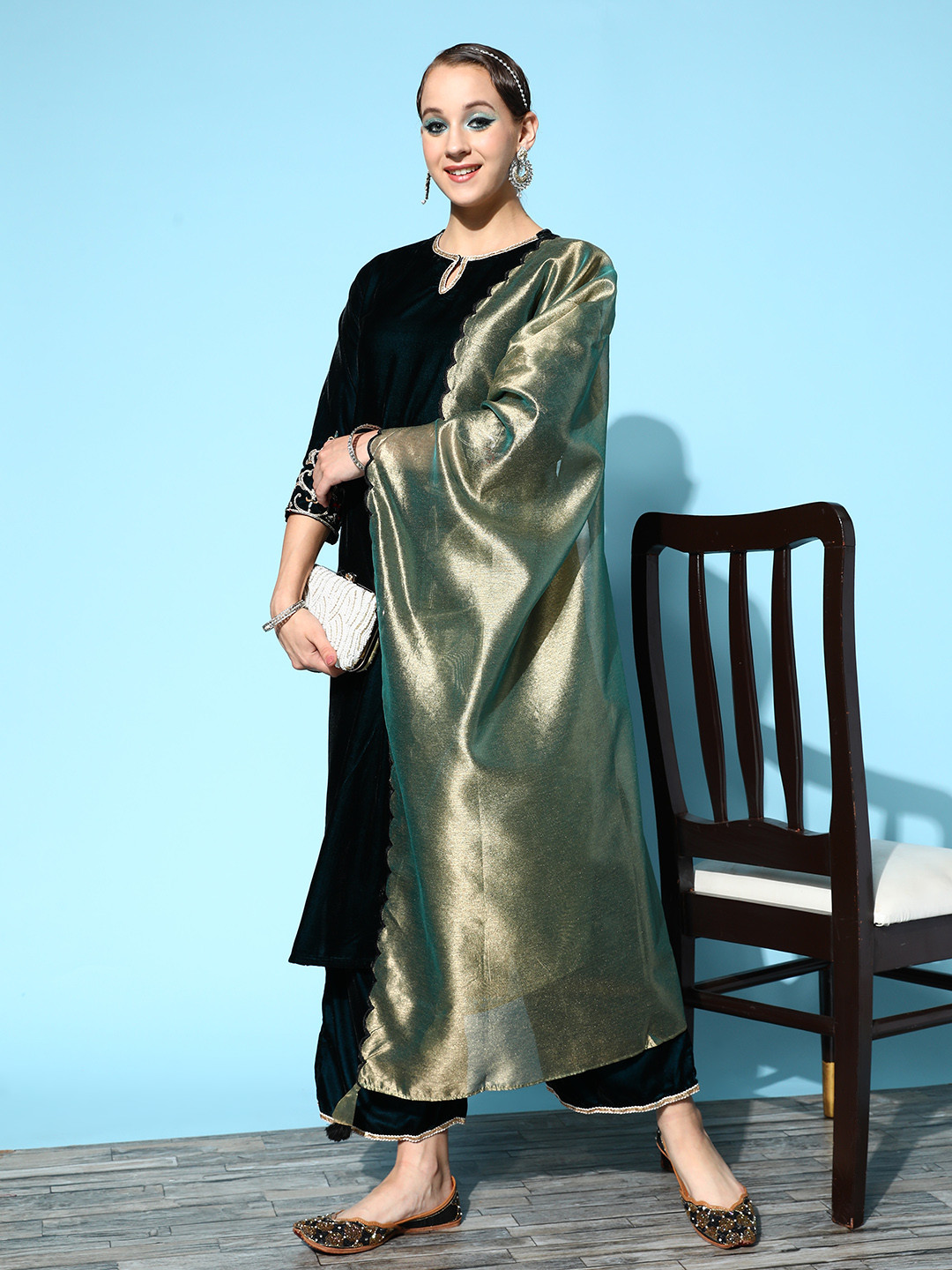 Der Dupatta aus Organza komplettiert das Ensemble perfekt. Leicht und luftig, mit dekorativen Elementen - einfach umwerfend!