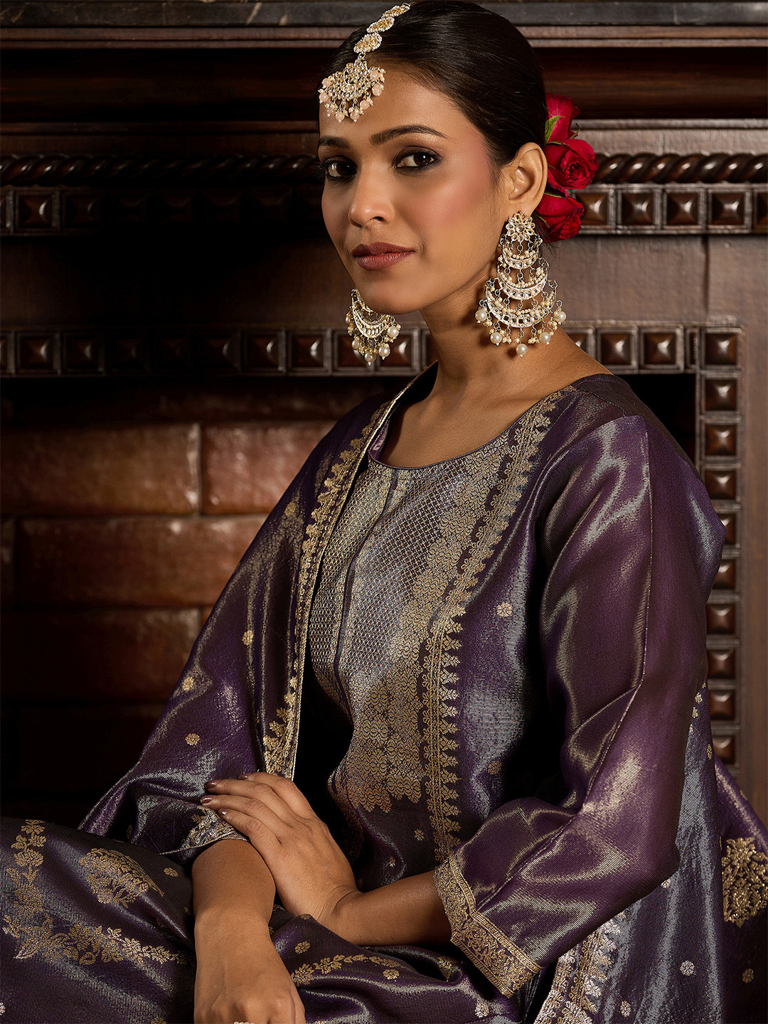 INDO ERA Gesticktes Kurta-Set - Lavendel Mit Dupatta