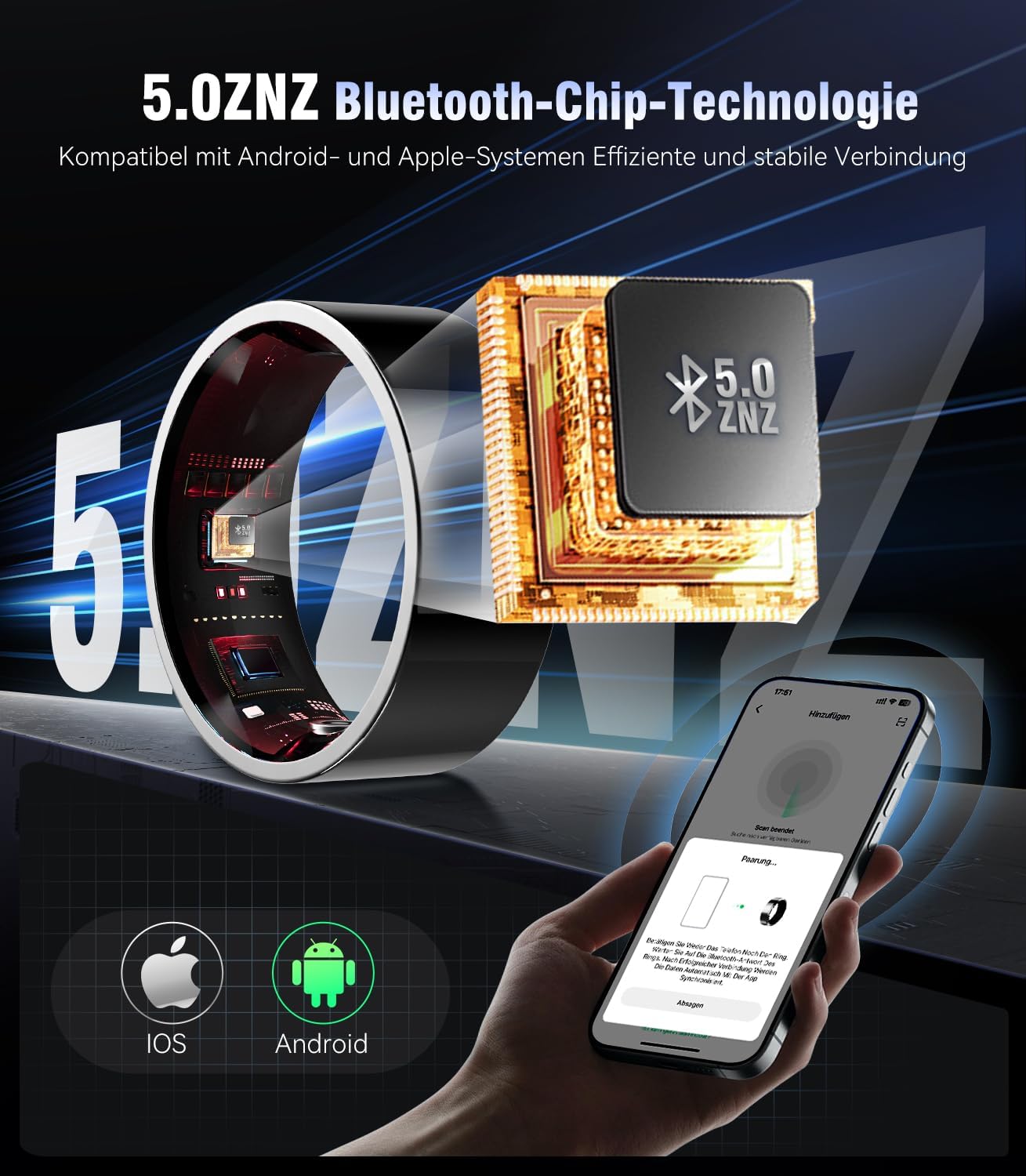 Stell dir vor: All deine Gesundheitsdaten tracken - aber diskret als Ring am Finger! Dieser smarte Ring misst deine Schritte, Schlafqualität, Herzfrequenz, Stresslevel und sogar deine Blutsauerstoffsättigung. Mit der neuesten Chip-Technologie für stabile Verbindung zu deinem Smartphone. Und das Beste: Er ist wasserdicht bis IP68 - also duschen, schwimmen, kein Problem! Die Messungen sind super genau und helfen dir, deine Gesundheit besser im Blick zu behalten. Automatische Messungen jede Stunde - du musst an nichts denken. Wichtig: Vor dem Kauf unbedingt die Größentabelle checken, damit der Ring auch perfekt sitzt! Ob für Sport, Arbeit oder einfach für mehr Achtsamkeit im Alltag - dieser Ring ist dein persönlicher Gesundheitscoach am Finger.