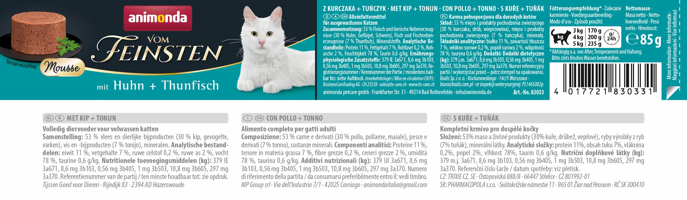 Miau, das schmeckt! Dieses super leckere Nassfutter für deine Samtpfote kommt komplett ohne Getreide und Zucker aus - nur das Beste für deinen Liebling! Mit hochwertigem Huhn und Thunfisch in verschiedenen Kombinationen: Huhn pur, Huhn mit Krabbenfleisch, Huhn mit Karotten, Thunfisch solo, Thunfisch mit Kabeljau und Thunfisch mit Silberfischchen. So wird's nie langweilig im Napf! Die 6 praktischen 50g-Beutel sind perfekt portioniert und super frisch. Ohne künstliche Farb- oder Konservierungsstoffe - nur natürliche Zutaten, die deine Katze wirklich braucht. Besonders gut für wählerische Fresser und um deine Katze zu mehr Flüssigkeitsaufnahme zu animieren. Ob Kätzchen, erwachsene Katze oder Senior - dieses Futter ist für jede Lebensphase geeignet. Deine Katze wird's lieben! Und du kannst beruhigt sein, dass sie alles bekommt, was sie für eine gesunde Ernährung braucht. Einfach öffnen und glückliche Katze genießen!