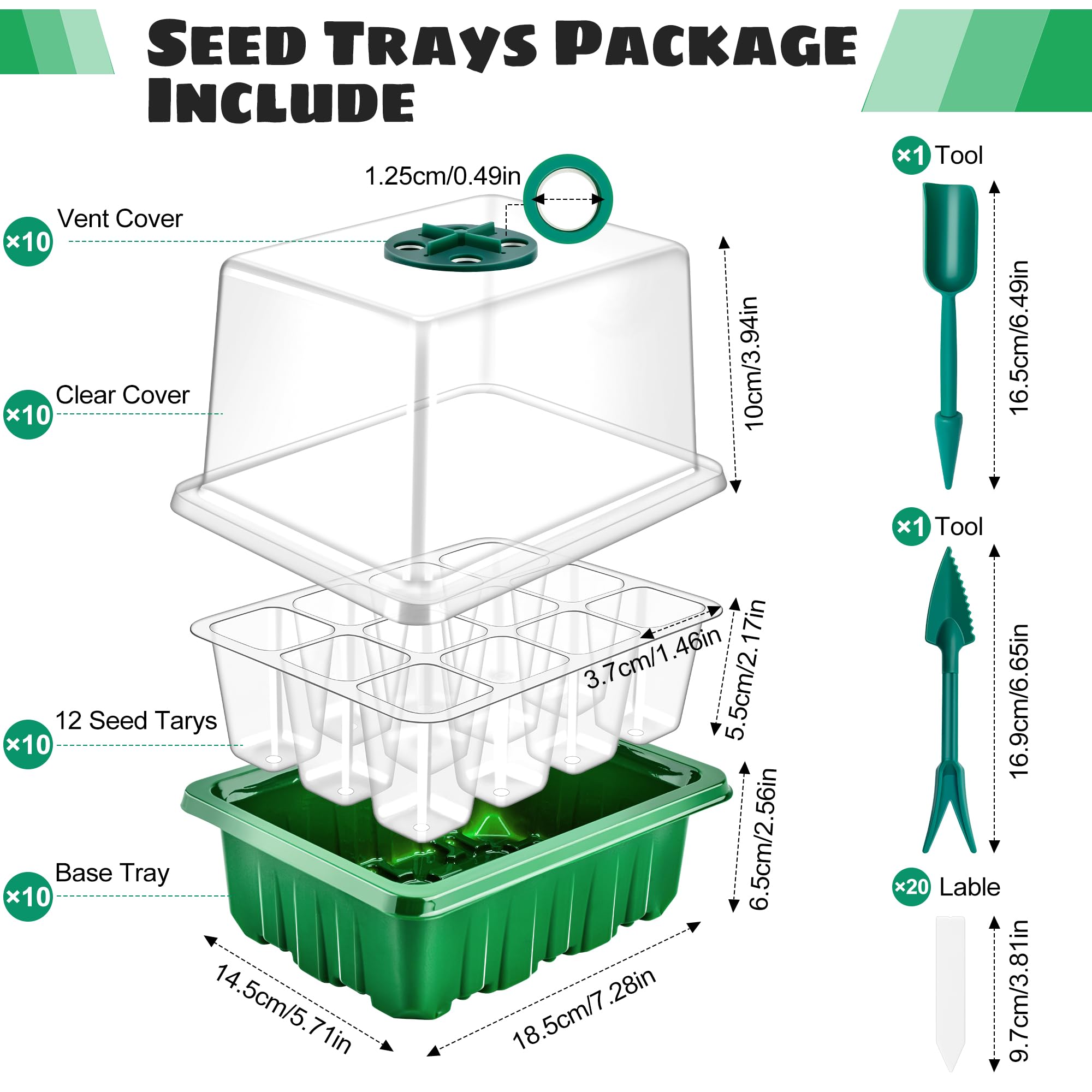Grüner Daumen inklusive! Mit unseren 10 praktischen Mini-Gewächshäusern wird die Pflanzenanzucht zum Kinderspiel. Jedes Gewächshaus misst 27x19 cm und bietet Platz für bis zu 24 Pflanzen - perfekt für die Aufzucht von Kräutern, Gemüse oder Blumen. Die transparenten Abdeckhauben schützen deine zarten Sämlinge vor Regen und schaffen ein optimales Mikroklima mit konstanter Feuchtigkeit und Wärme. So keimen deine Pflanzen schneller und entwickeln sich besser. Egal ob drinnen auf der Fensterbank oder draußen im Garten - die Gewächshäuser sind vielseitig einsetzbar und intuitiv zu bedienen. Aus stabilem Material gefertigt, das lange hält. Ein Must-Have für alle Gartenfans, die ihre Pflanzen selbst vorziehen möchten. Einfach befüllen, gießen und beim Wachsen zusehen - so macht Gärtnern Spaß!