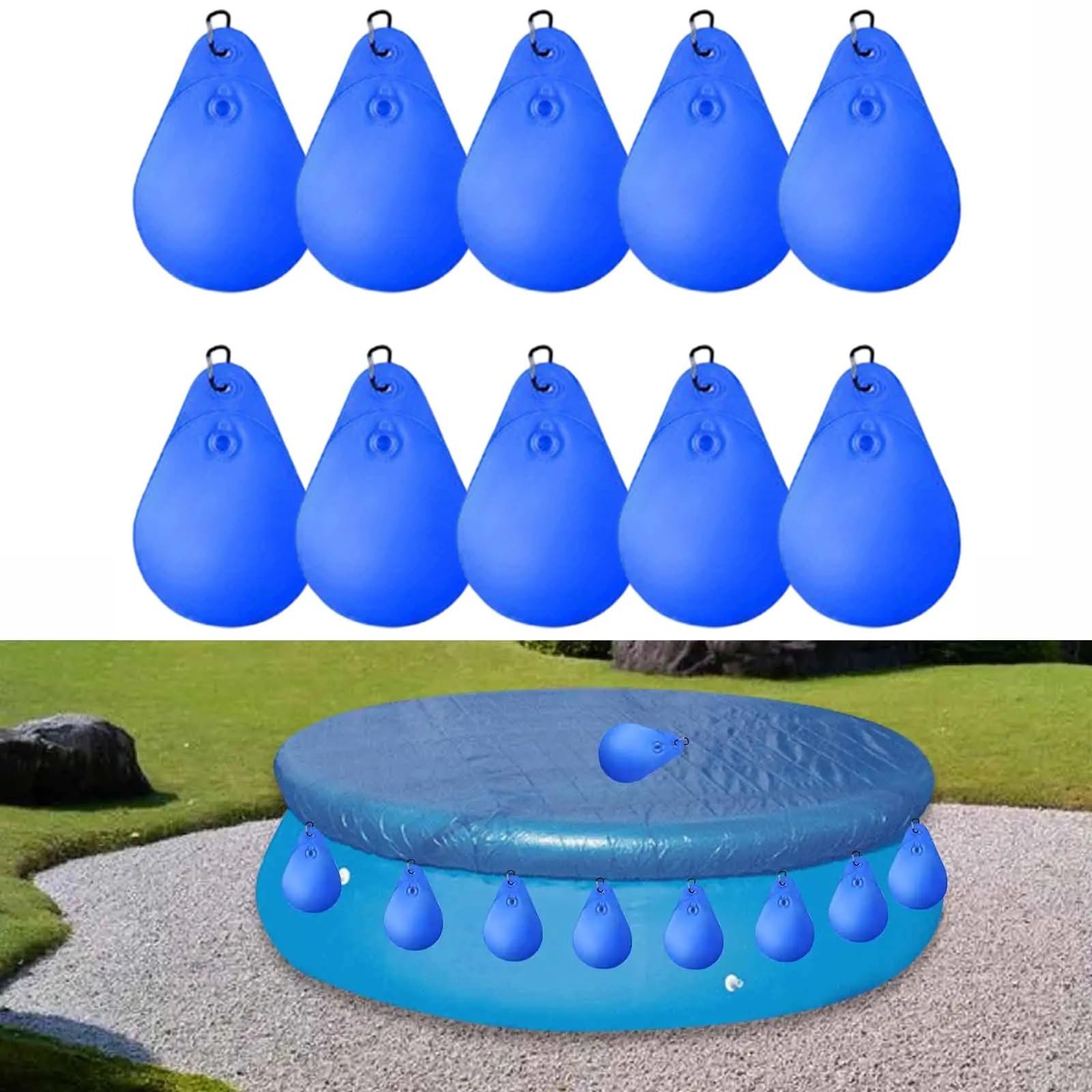 Endlich keine flatternde Poolabdeckung mehr! Diese 12 praktischen Wassersäcke halten deine Poolabdeckung bombenfest. Mit 23x34cm Größe bieten sie genug Gewicht, um auch bei starkem Wind zu halten. Aus robustem PVC-Material mit verstärkten Rändern - absolut auslaufsicher! Das Anti-Leck-Ventil macht das Befüllen super einfach. Einfach mit Wasser oder Sand füllen (nur bis 70% voll!) und mit den 12 Karabinern an der Abdeckung befestigen. Schützen deinen Pool vor Laub, Schmutz und Schnee. Auch als Entlastungskissen für Poolwände nutzbar! Frostbeständig und extrem wetterfest - hält jeden Winter durch. Mach deine Poolabdeckung sturmsicher und spar dir Ärger! Einfach aufzubauen und wieder zu entfernen. Perfekte Lösung für jeden Poolbesitzer!