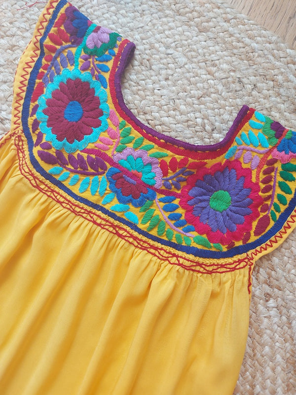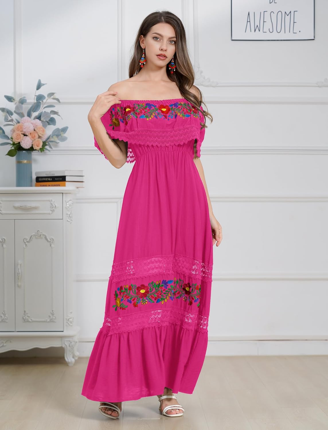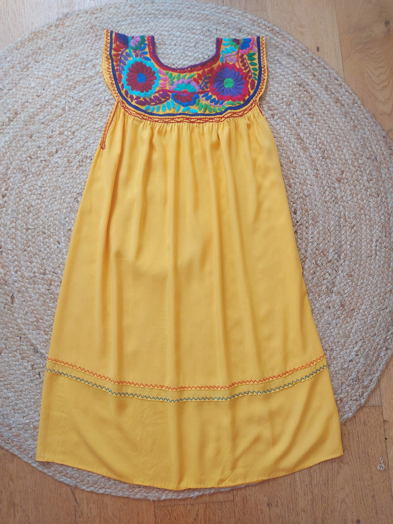 Oh, dieses Kleid ist ja der absolute Sommer-Traum! Das mexikanische Design mit den bunten Blumenprints und der schulterfreien Silhouette sieht einfach umwerfend aus. Aus weichem Polyester, dehnbar und super angenehm zu tragen.\n\nDer geraffte Taillenbereich betont deine Figur, während der gestufte Rock für schöne Bewegung sorgt. Bodenlang und ärmellos - perfekt für warme Tage. In Größen von S bis 3XL verfügbar.\n\nIdeal für Strandpartys, Festivals, Sommerfeste oder einfach für den Alltag. Das böhmische Flair macht jede Trägerin zum Hingucker. Handwäsche empfohlen, dann hält das Kleid lange schön.\n\nMit diesem Kleid fühlst du dich wie im Urlaub - auch wenn du nur durch die Stadt schlenderst. Einfach anziehen und strahlen!