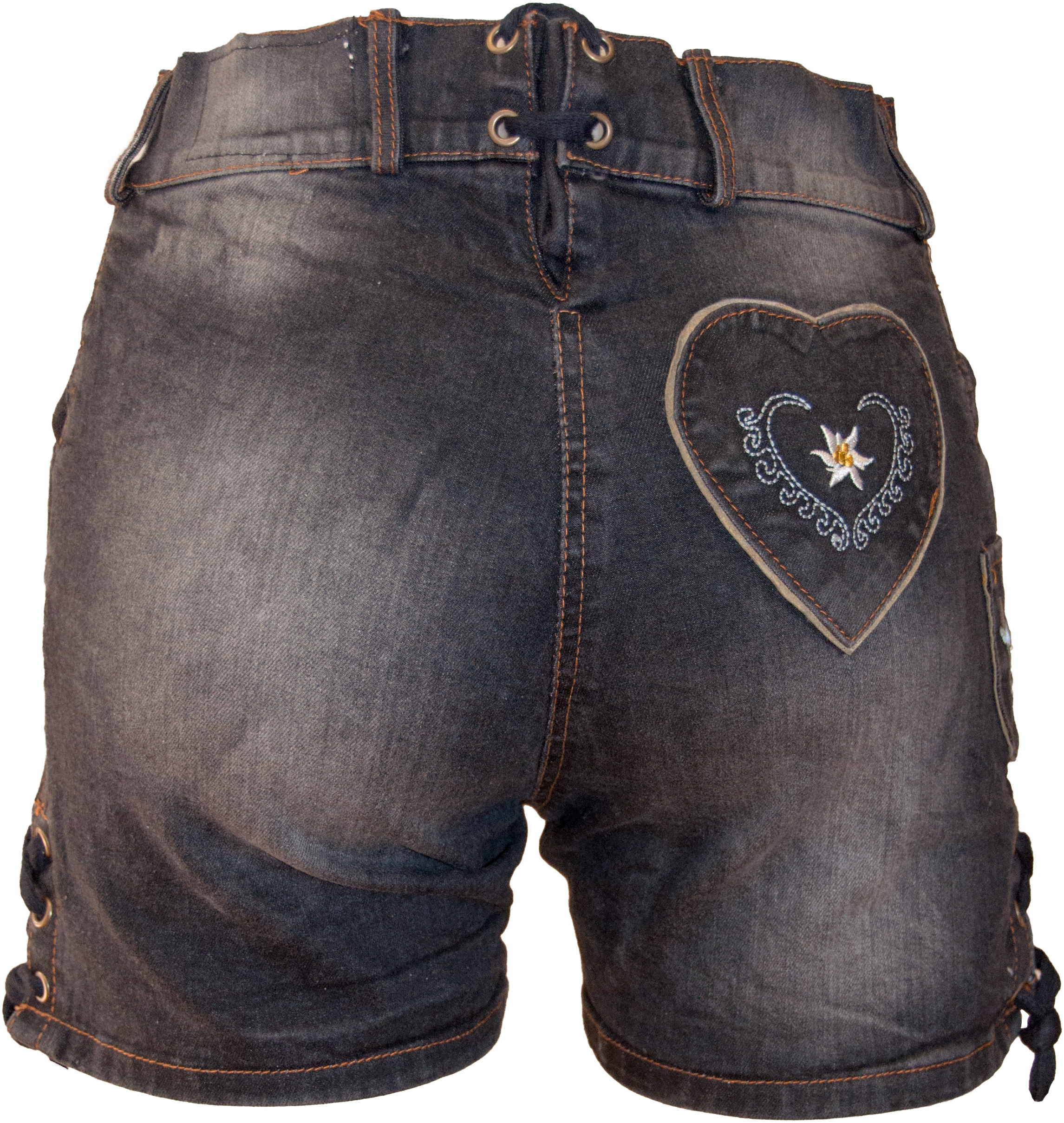 Almwerk Damen Lederhose Gina - Kurze Trachtenjeans In Blau/Schwarz Mit Stretch