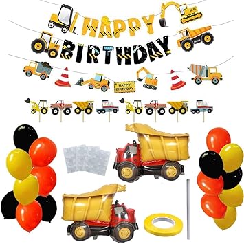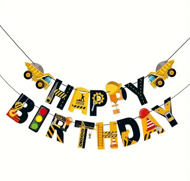 KOBOKO Baustelle Happy Birthday Girlande - Bagger Geburtstagsdekoration Für Kinderparty