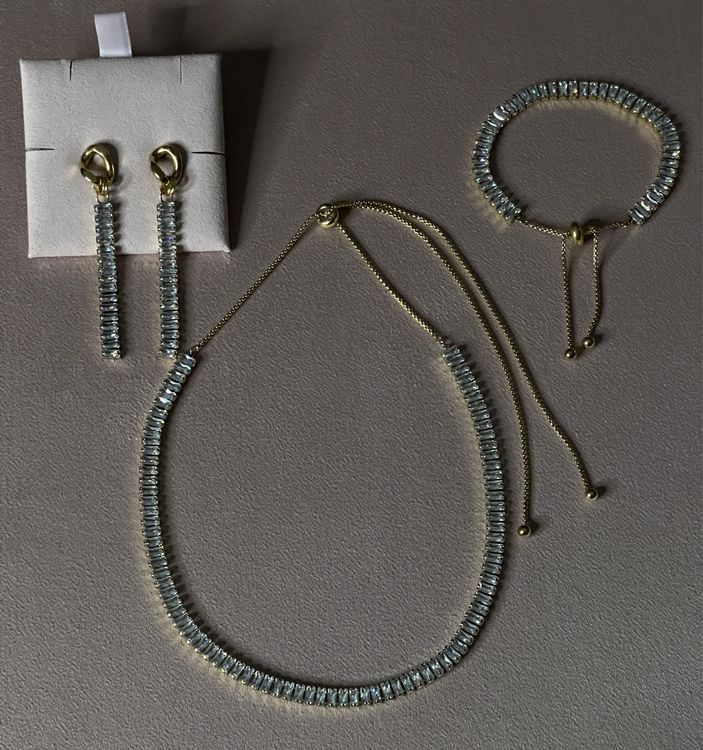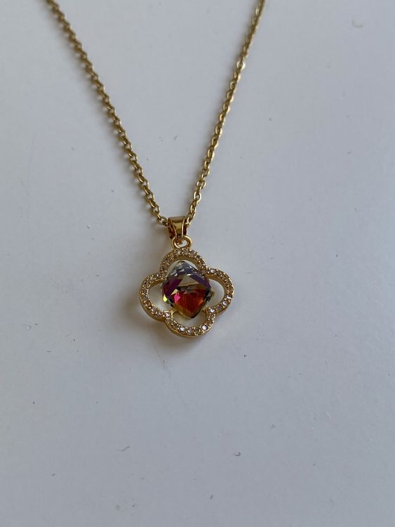 Suchst du nach einem besonderen Schmuckset, das nicht nur schön aussieht, sondern auch Glück bringt? Dieses 3-teilige Set von AOWVUTS mit dem vierblättrigen Kleeblatt-Design ist perfekt! Das Kleeblatt steht für Glauben, Hoffnung, Liebe und Glück - was will man mehr?\n\nDas Set besteht aus einer Halskette (40 cm + 5 cm Verlängerung), einem Armband (16 cm + 4,8 cm Verlängerung) und einem wunderschönen Armreif mit Zirkonia-Steinchen. Aus 18k vergoldetem Edelstahl gefertigt, ist der Schmuck hypoallergen, nickelfrei und bleifrei - also super verträglich auch für empfindliche Haut.\n\nPerfekt als Geschenk für besondere Anlässe wie Muttertag, Valentinstag, Geburtstage oder einfach nur so. Ob zu eleganter Abendmode oder lässiger Freizeitkleidung - dieses Set passt immer und macht jede Trägerin zum strahlenden Mittelpunkt. Ein zeitloses Design, das garantiert begeistert!
