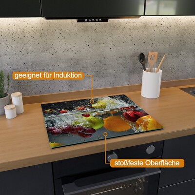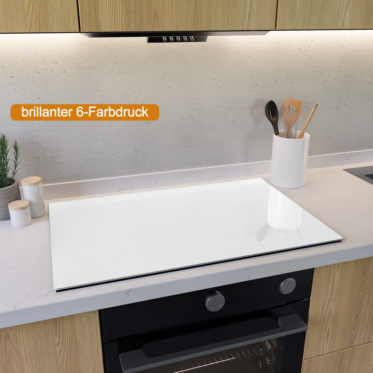 Praktische Herdabdeckplatte aus stabilem 4mm Sicherheitsglas! Mit 80x52cm perfekt für die meisten Ceran- und Induktionsherde. Schützt dein Kochfeld vor Kratzern und Schmutz wenn du es nicht benutzt. Aber das ist noch nicht alles - du kannst sie auch als zusätzliche Arbeitsfläche nutzen oder als Spritzschutz hinter dem Herd aufstellen. Die 13mm hohen Füße mit Gumminoppen sorgen für rutschfesten Stand. Hitzebeständig - kannst auch heiße Töpfe drauf abstellen. Einfach mit feuchtem Lappen zu reinigen und hygienisch. Made in Germany - Qualität die überzeugt! Sieht in schlichtem Schwarz super modern aus und passt in jede Küche. Wenn du willst, gibt's auch individuelle Motive (gegen Aufpreis). Einfach auf das ausgekühlte Kochfeld legen und schon ist es geschützt. Praktisch auch als Küchenrückwand oder Servierplatte. Macht deine Küche nicht nur sicherer, sondern auch noch schicker. Einfach mal ausprobieren - du wirst sie lieben!
