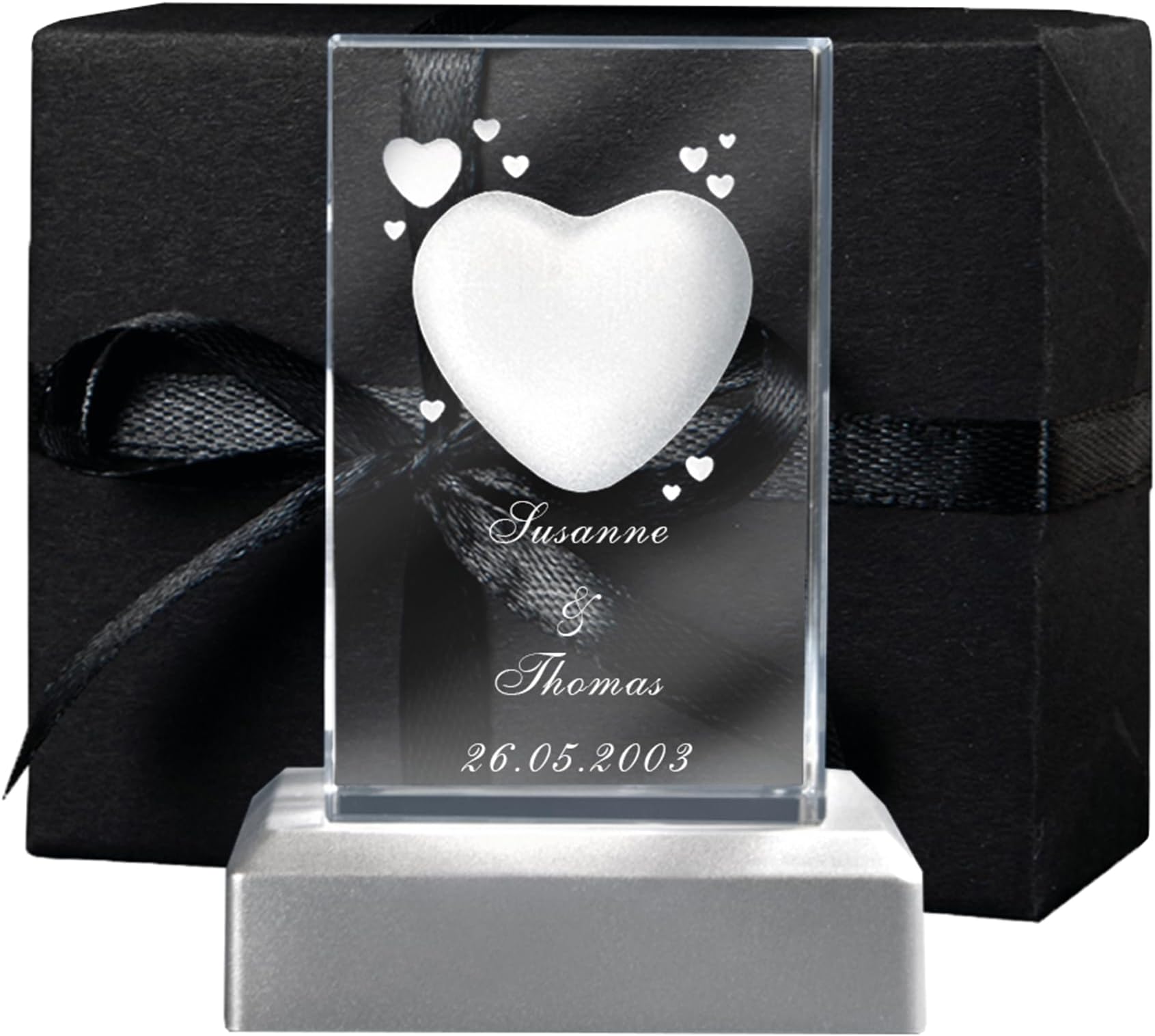 Personalisiertes 3D-Lasergravur-Glas Mit Liebesmotiv, Namen & Datum - Inkl. LED-Sockel, Perfektes Geschenk