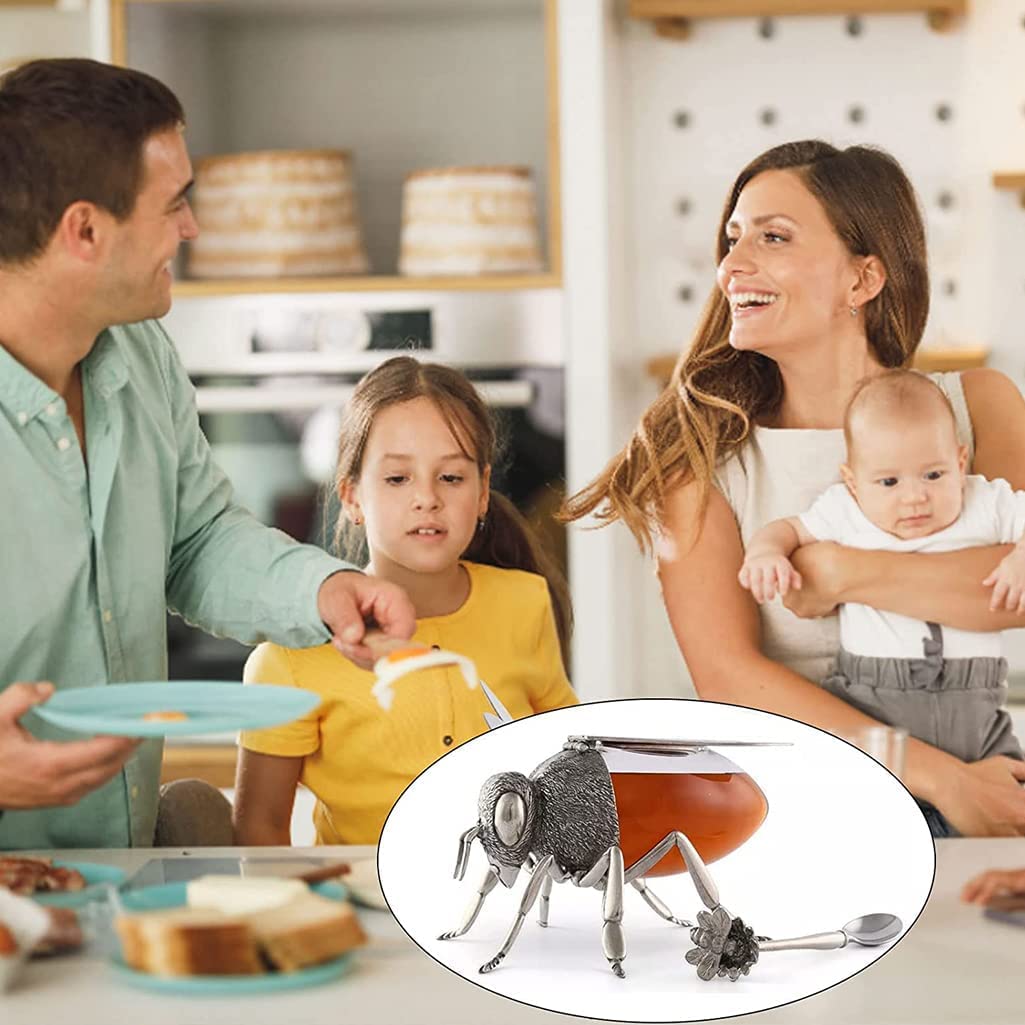 Oh wie niedlich! Dieses Honigglas in Bienenform ist einfach mal anders als alle anderen. Aus echtem Glas mit Zinklegierung - super für Honig, aber auch für Gewürze, Sirup oder Teeblätter. Maße: ca. 14,5 x 10,2 x 8,8 cm. Inklusive praktischem Löffelchen! Sieht nicht nur in der Küche toll aus, sondern auch im Wohnzimmer, Büro oder sogar im Restaurant. Leicht zu reinigen und wirklich stabil. Das süße Bienendesign bringt gute Laune und ist ein tolles Geschenk für alle Honig-Liebhaber. Platzsparend und dekorativ - mehr geht nicht!