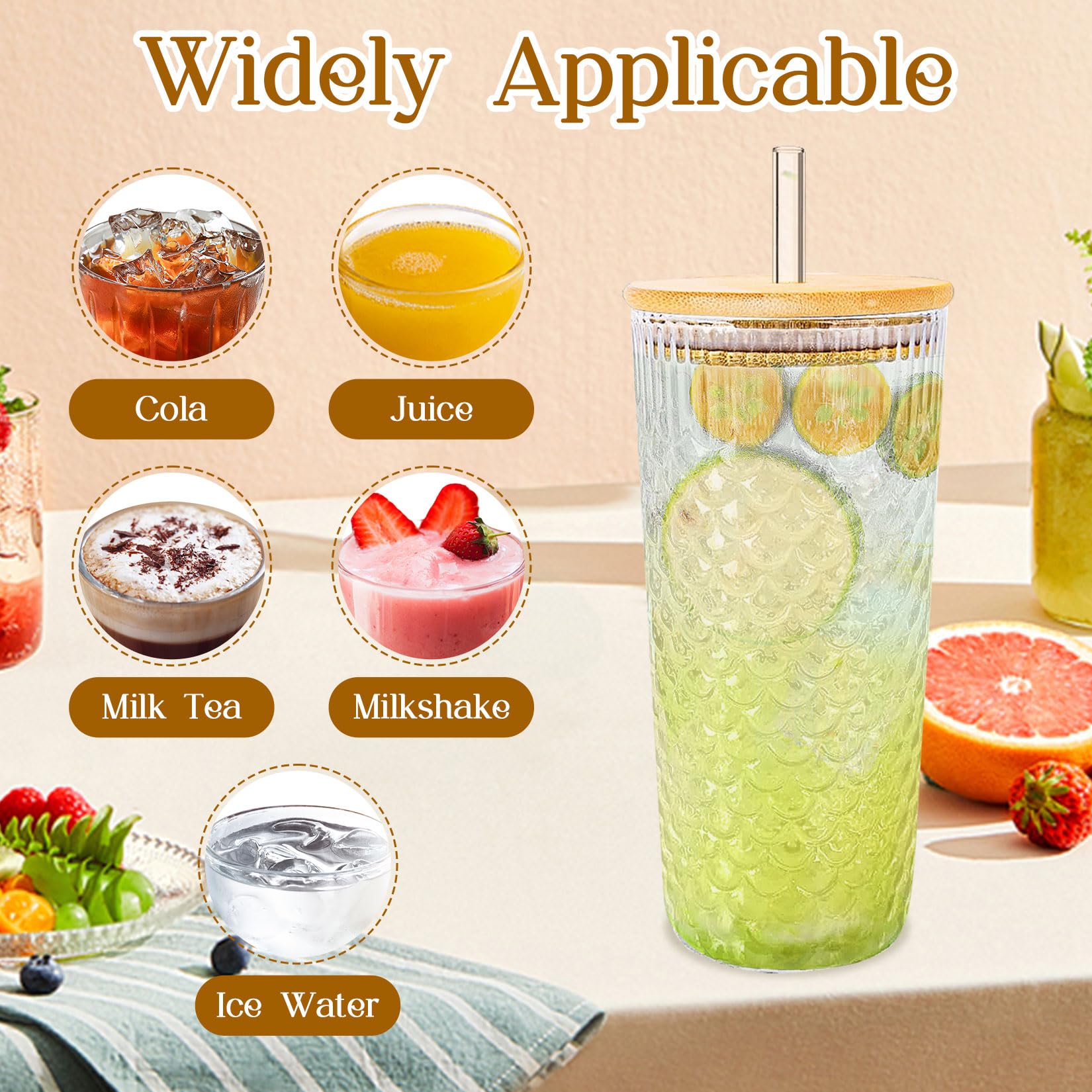 Stylische Glasbecher für heiße und kalte Getränke! Dieses Set mit zwei 650ml Bechern aus Borosilikatglas ist total vielseitig. Mit praktischen Bambusdeckeln und Glasstrohhalmen. Hitzebeständig von -30°C bis 150°C - perfekt für Kaffee, Smoothies oder kalte Getränke. BPA-frei und lebensmittelecht. Die schöne Fischschuppen-Optik sieht nicht nur gut aus, sondern ist auch rutschfest. Spülmaschinenfest (außer Deckel) und mikrowellengeeignet. Ideal für unterwegs, ins Büro oder für daheim. Komplett mit Reinigungsbürsten für die Strohhalme. Mach deine Getränke zum Erlebnis!