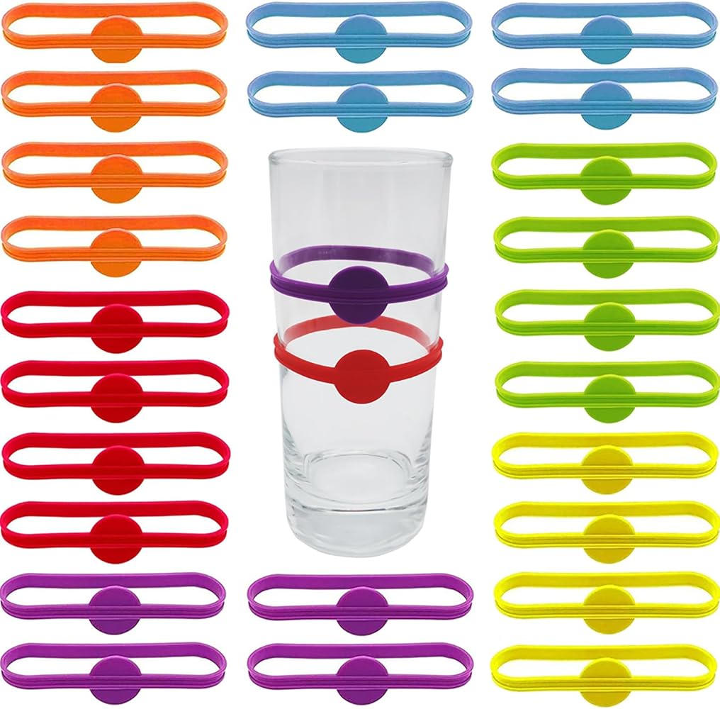 24 Bunte Glasmarker Aus Silikon - Wiederverwendbare Trinkglas-Ringe Für Partys & Feiern