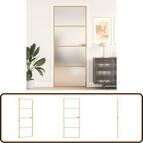 BAZZI Innentür Golden-11 | Schlanke Glastür Mit Zarge | 83x201,5 Cm | Mattglas & Aluminium