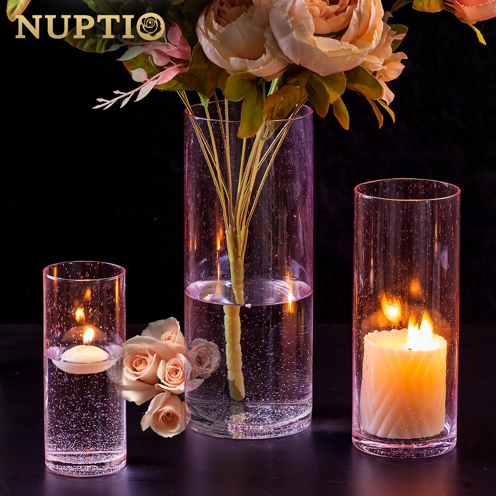 3er Set Glasvasen & Hurricane Kerzenhalter - 14/20/23,6cm Für Weihnachtsdeko & Hochzeit
