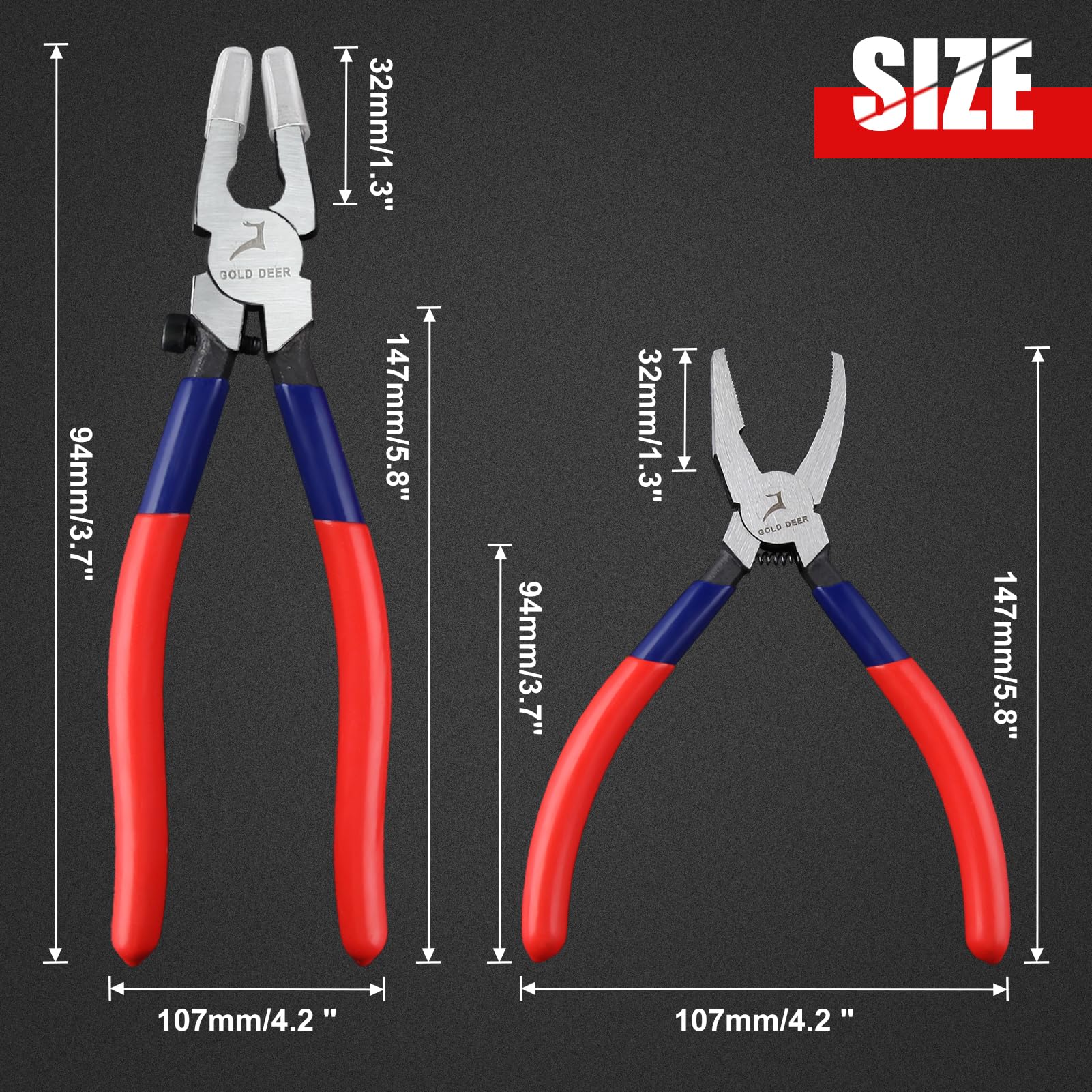 Für alle Glas-Künstler und Handwerker! Diese 6 Zoll Glaszange von GOLD DEER ist dein neuer bester Freund bei der Glasbearbeitung. Die flachen Backen mit weichen Gummispitzen schonen dein Material perfekt - keine Kratzer, keine Beschädigungen! Die verstellbare Schraube gibt dir die totale Kontrolle über den Druck. Mit den rutschfesten rot-blauen Griffen liegt die Zange super in der Hand, auch bei stundenlangem Arbeiten. Perfekt zum Ziehen von Glas, für Mosaik-Arbeiten, zum Brechen kleiner Glasstücke oder für die Installation von Schlüsselanhängern. Die kompakte Größe ist ideal für kleine Hände, aber trotzdem robust genug für den täglichen Einsatz. Aus Carbon-Stahl gefertigt, hält dieses Werkzeug wirklich lange. Egal ob du Anfänger oder Profi bist - mit dieser Zange machst du einfach alles richtig! Ein Must-Have für jede Werkstatt!