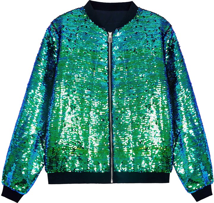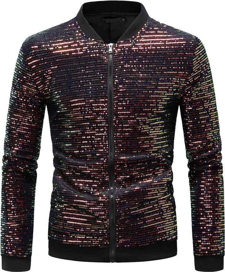 Beokeuioe Glitzer Bomberjacke Herren - Metallic Pailletten Jacke 70er Disco Style
